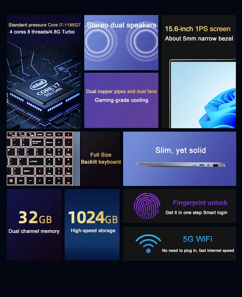 Comprar Ordenadores portátiles para juegos con Windows 11, Notebook de Metal para oficina de 2023 pulgadas, 11. ª generación, Intel Core I7-1185G7, 64GB de RAM, 2TB, M.2, NVME, RJ45, LAN, 15,6
