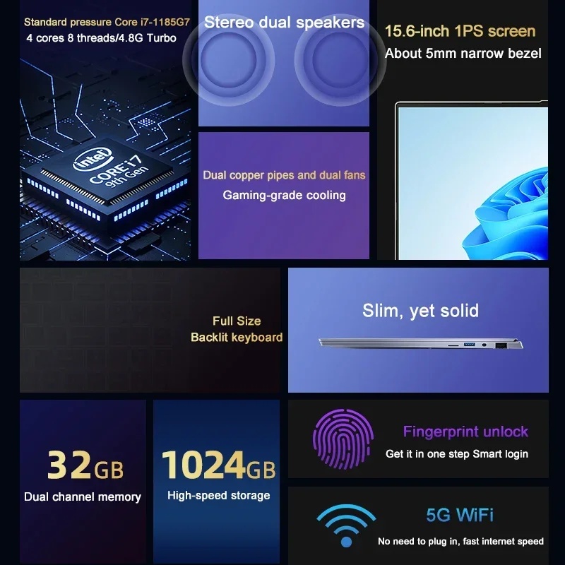 Comprar Ordenadores portátiles para juegos con Windows 11, Notebook de Metal para oficina de 2023 pulgadas, 11. ª generación, Intel Core I7-1185G7, 64GB de RAM, 2TB, M.2, NVME, RJ45, LAN, 15,6