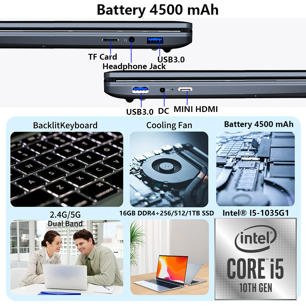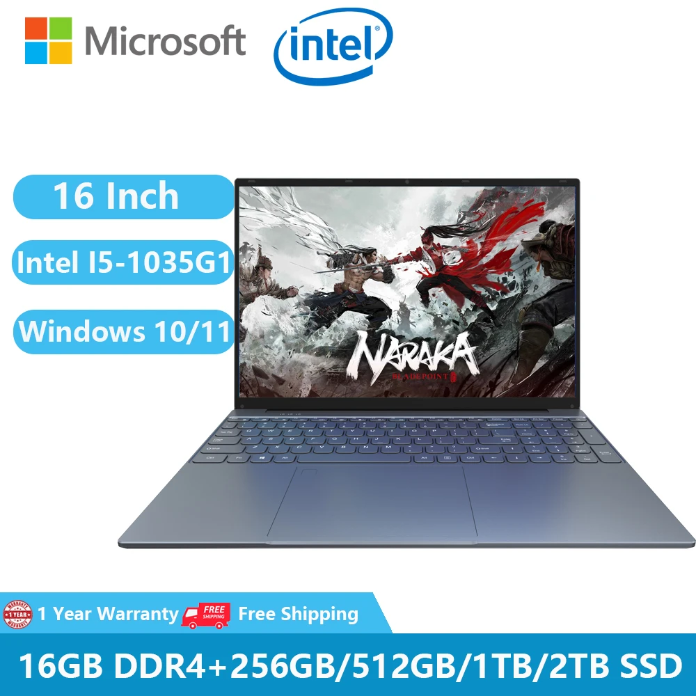 Comprar Ordenadores portátiles para juegos con Windows 11, Notebook de oficina, Netbook de 16 pulgadas, 10ª generación, Intel I5-1035G1, 16GB de RAM, 1TB, M.2, cámara WiFi, 2023