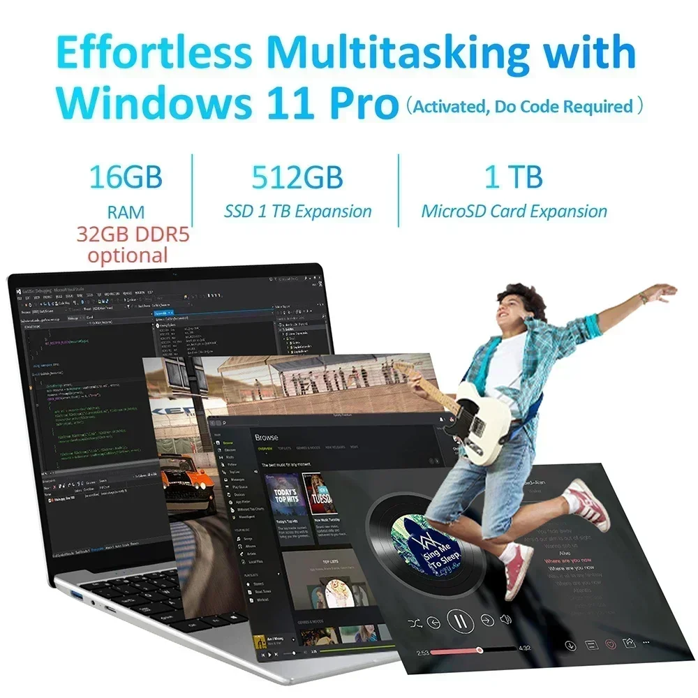 Comprar Ordenadores portátiles para juegos con Windows 11, Notebook de oficina, Netbook de 2024 pulgadas, 12ª generación, Intel N95, 32GB, ranura DDR4, 2TB, M.2, cámara WiFi, 15,6