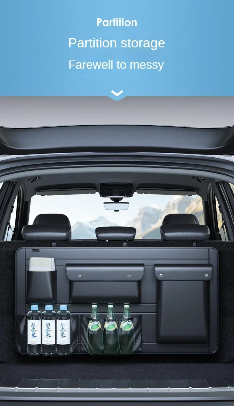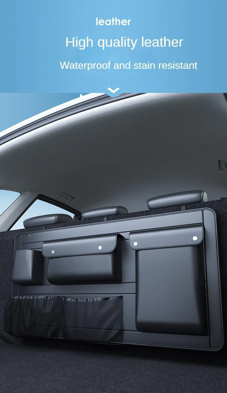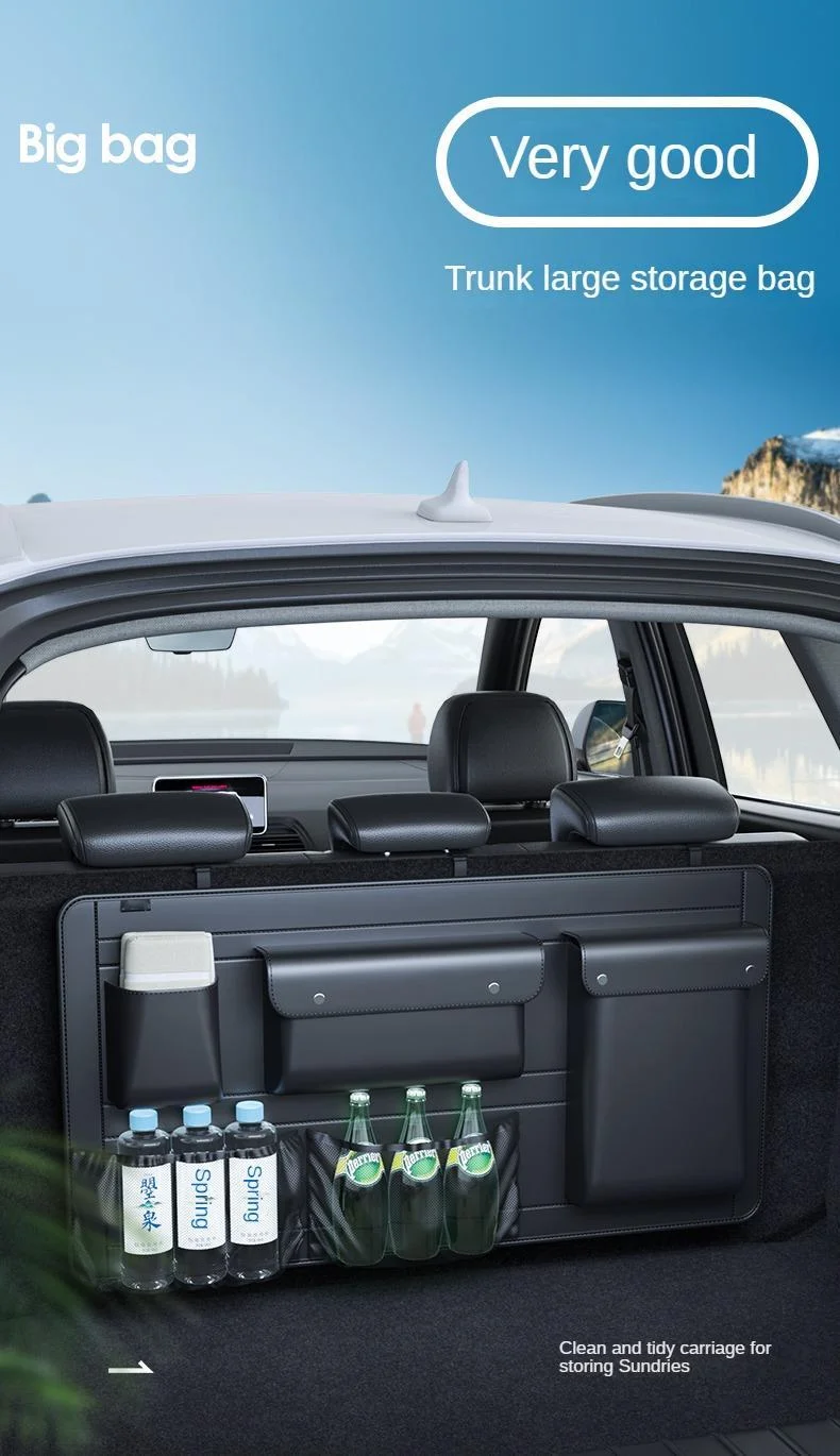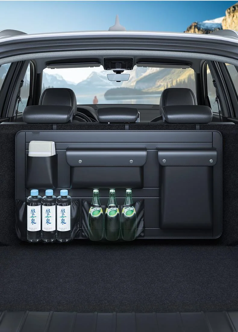 Comprar Organizador de asiento trasero de maletero de coche SUV, bolsa de almacenamiento colgante de cuero para asiento de coche, correas ajustables, bolsillos de red para botellas de viaje