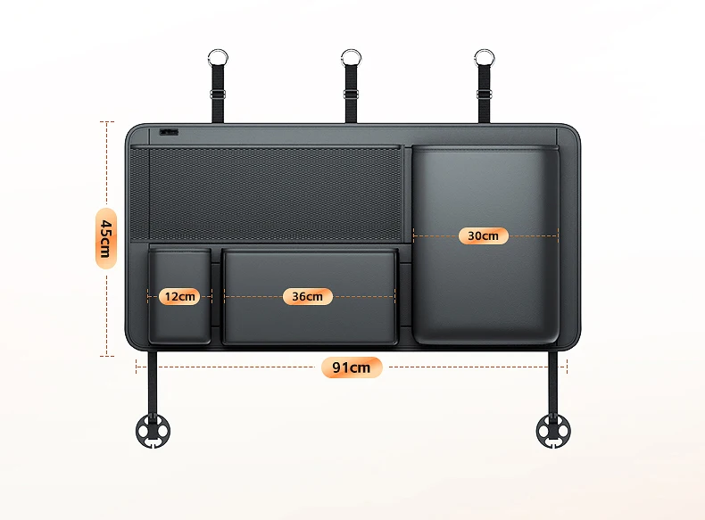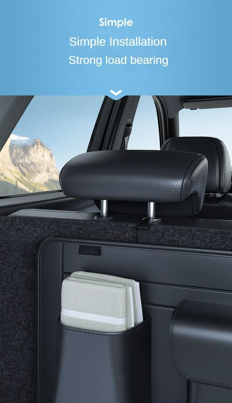 【Cómodo de usar】 Fije las 3 correas ajustables alrededor del reposacabezas, pegue la tira trasera al respaldo del asiento y llénelo con cualquier artículo que desee, este organizador de almacenamiento del respaldo del asiento también es fácil de quitar y plegar cuando no esté en uso.Se adapta a automóviles con reposacabezas tipo suspensión, como SUV, MPV, VAN, etc.