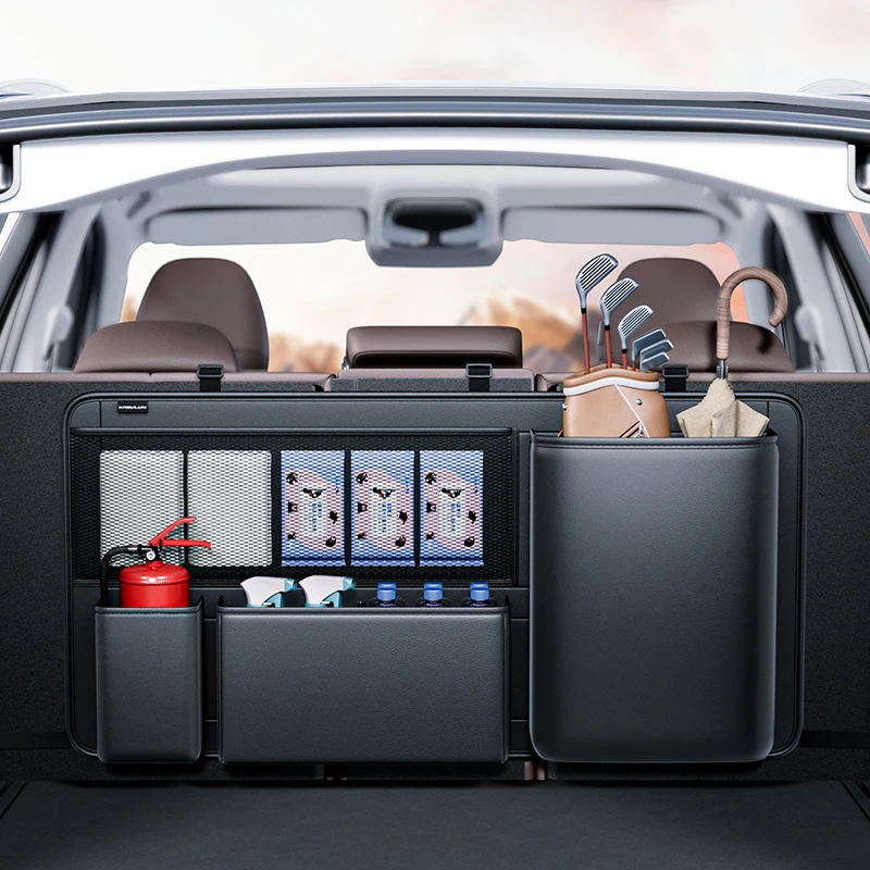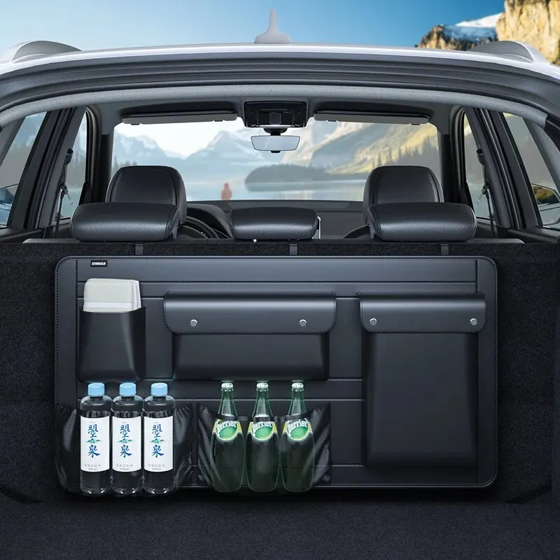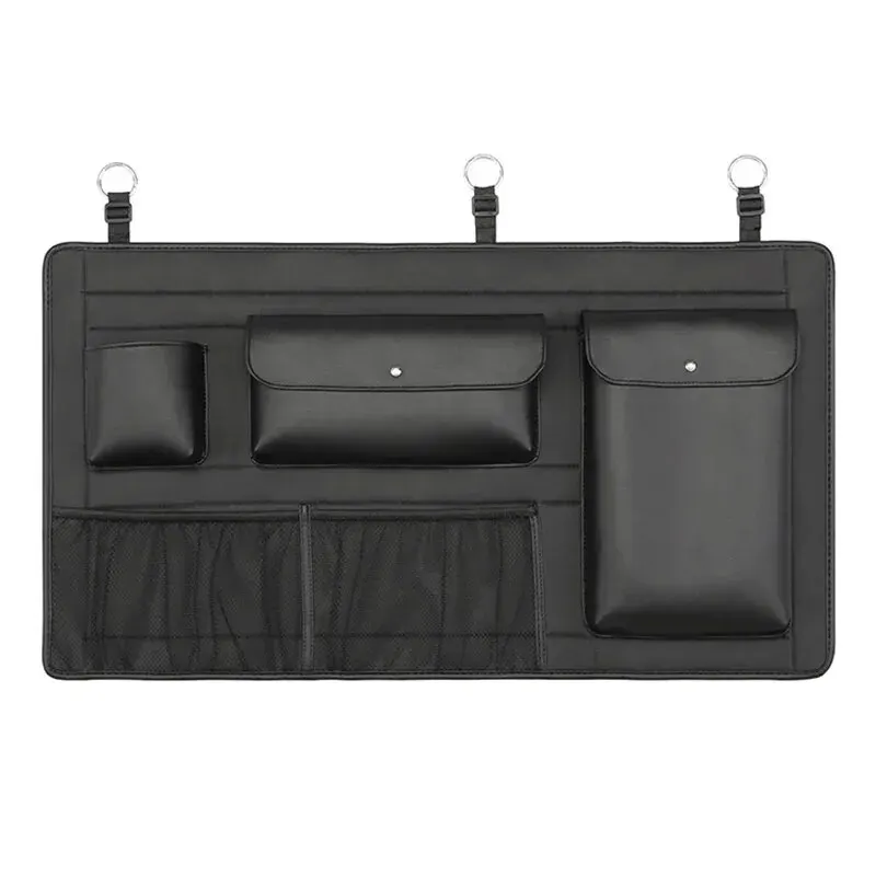 Comprar Organizador de asiento trasero de maletero de coche SUV, bolsa de almacenamiento colgante de cuero para asiento de coche, correas ajustables, bolsillos de red para botellas de viaje