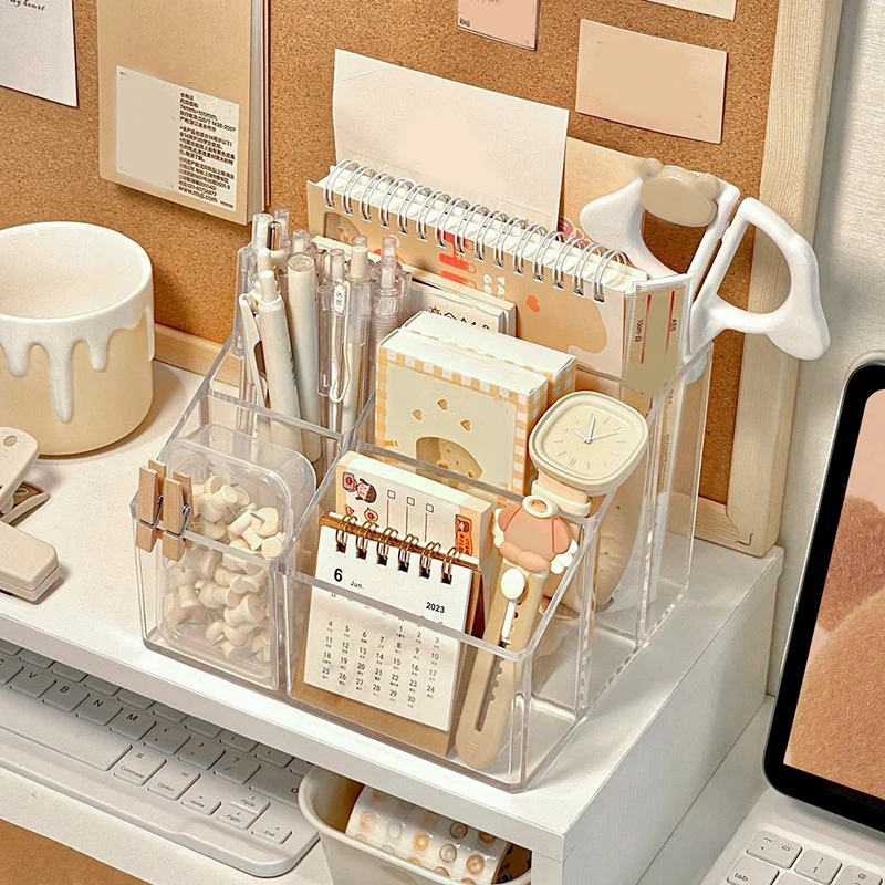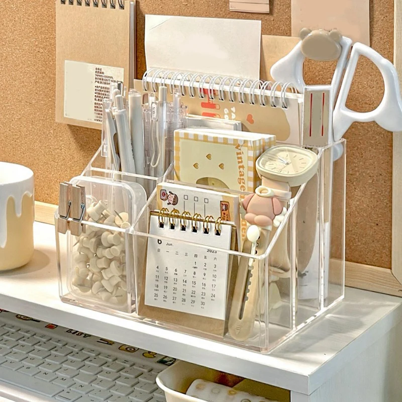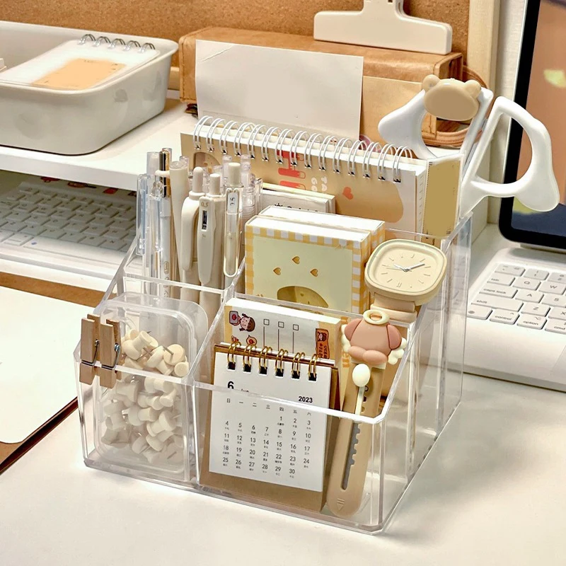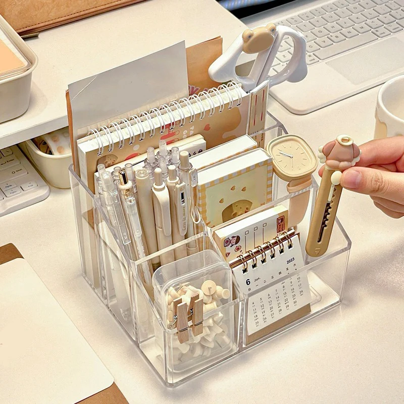 Organizador de bolígrafos transparente para escritorio, almacenamiento de suministros de oficina de plástico y caja de accesorios para marcador, papelería, portalápices