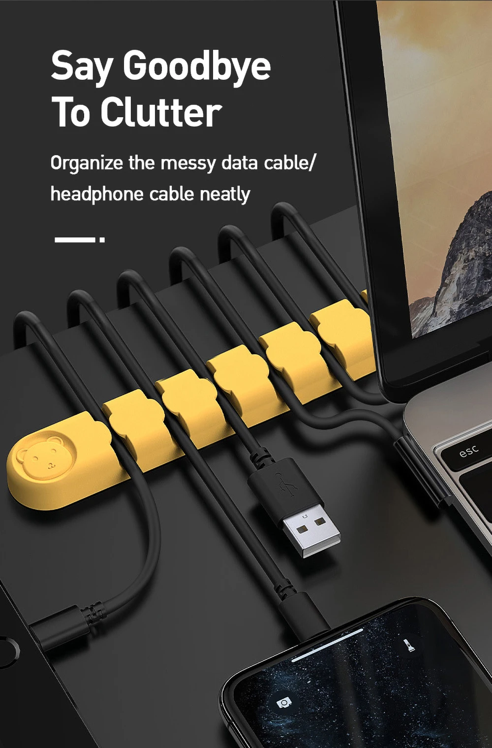 Comprar Organizador de Cables de escritorio, Clips enrolladores de cables, soporte de cables USB de silicona para ratón, organizador de cables de auriculares, 2 uds.
