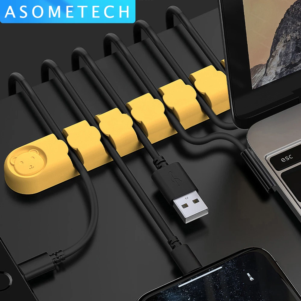 Comprar Organizador de Cables de escritorio, Clips enrolladores de cables, soporte de cables USB de silicona para ratón, organizador de cables de auriculares, 2 uds.