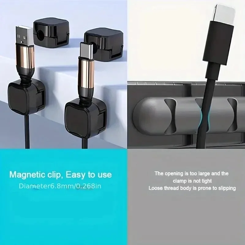 Comprar Organizador de Cables magnético, soporte ajustable para sujetar Cables debajo del escritorio, 6 piezas