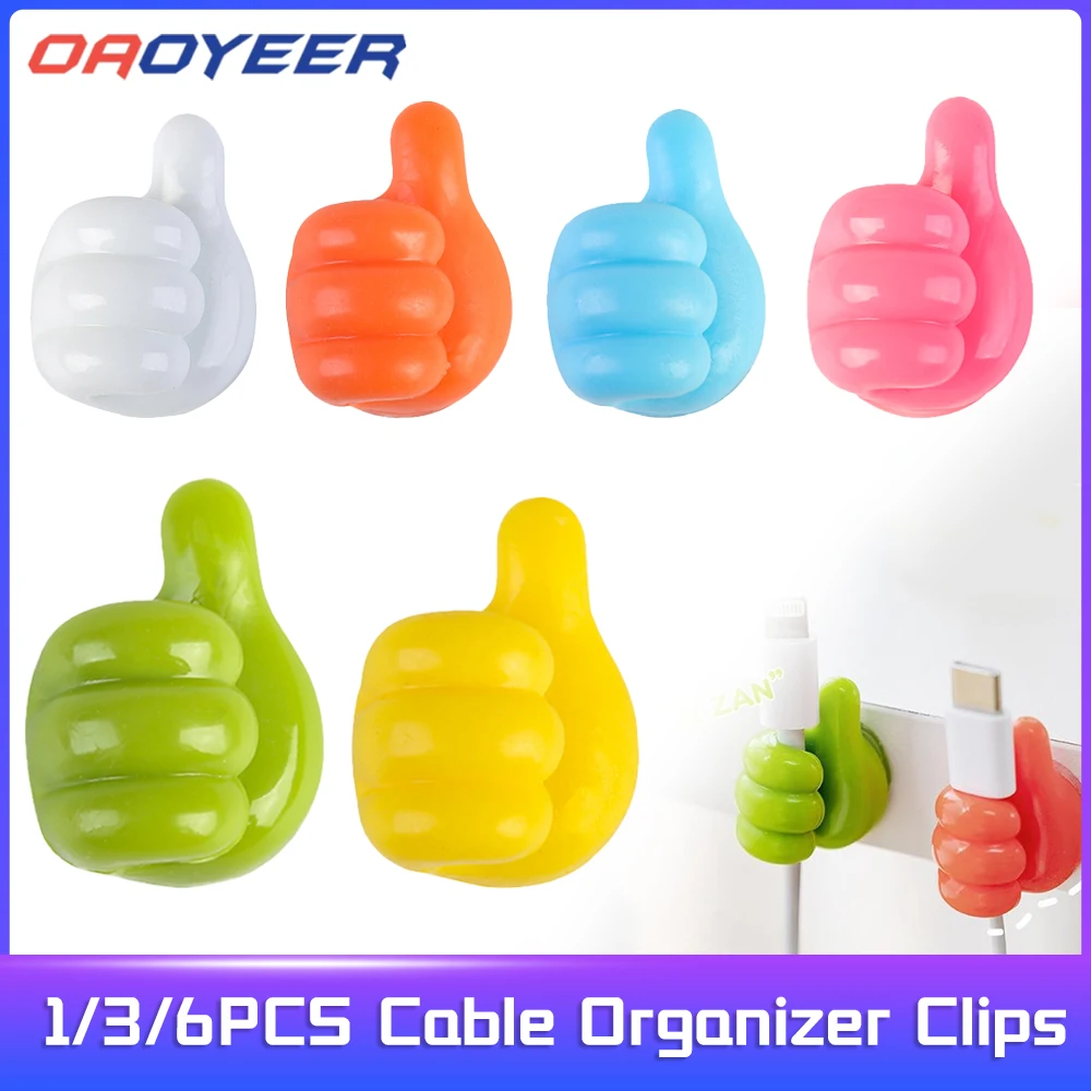 Comprar Organizador de cables multifuncional, soporte de Clip, ganchos de pulgar, ganchos de pared, colgador de Cable de almacenamiento para auriculares y ratón, 1/3/6 Uds.
