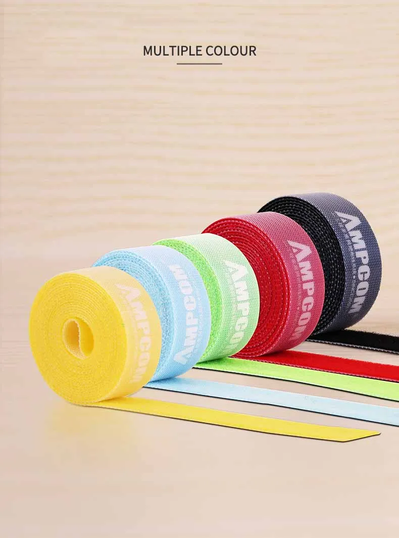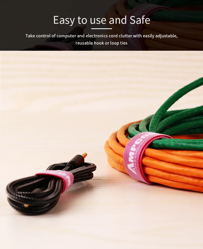 •The cable tie designed to bind your cables securely is made of woven nylon cloth. It's durable, flexible and reliable. Hook material on one side and loop material on the other makes organizing cables more conveniently, no sticking or damaging to the things that you tie together