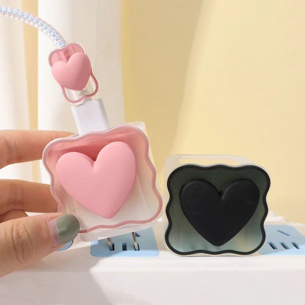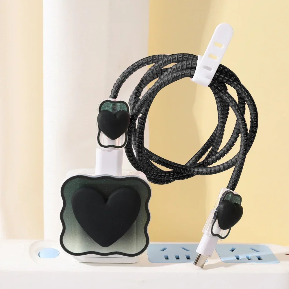 Comprar Organizador de cables Protector de cargador para iPhone 14, 13, 12, 11 Pro Max, 18W, 20W, 3D, corazón tipo C, gestión de cables de datos, Kit enrollador de cables
