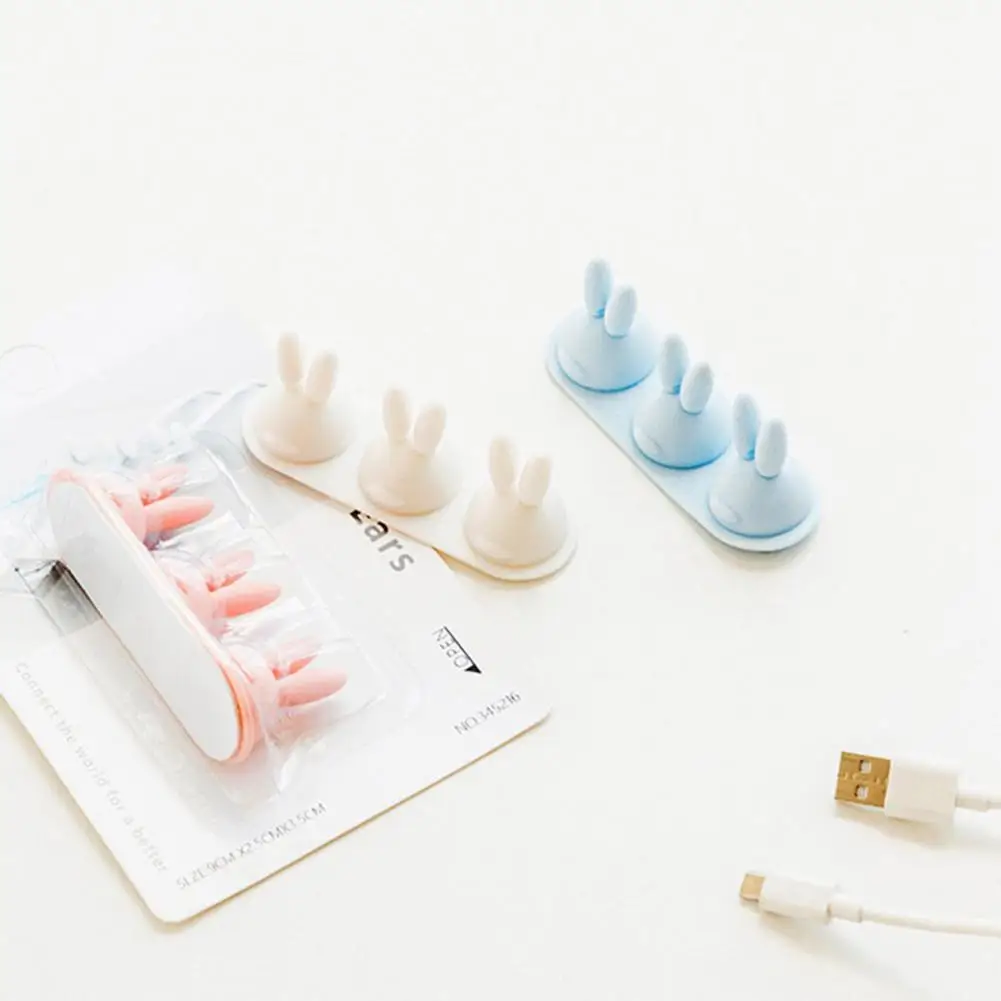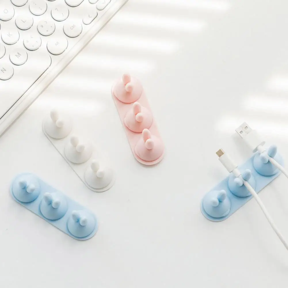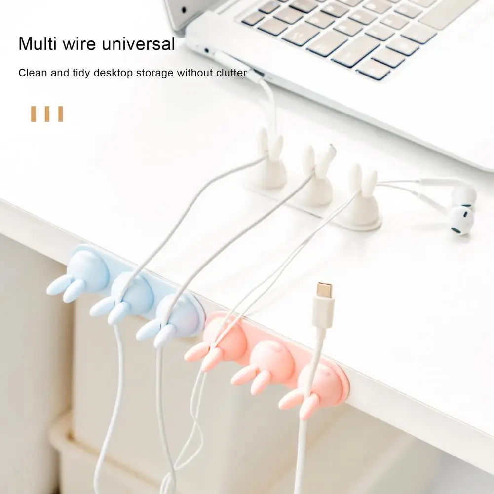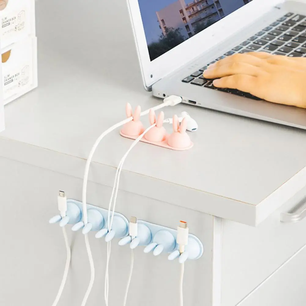 Organizador de cables con respaldo adhesivo, organizador de cables con diseño de conejo bonito, fácil instalación, escritorio adhesivo fuerte para cargar