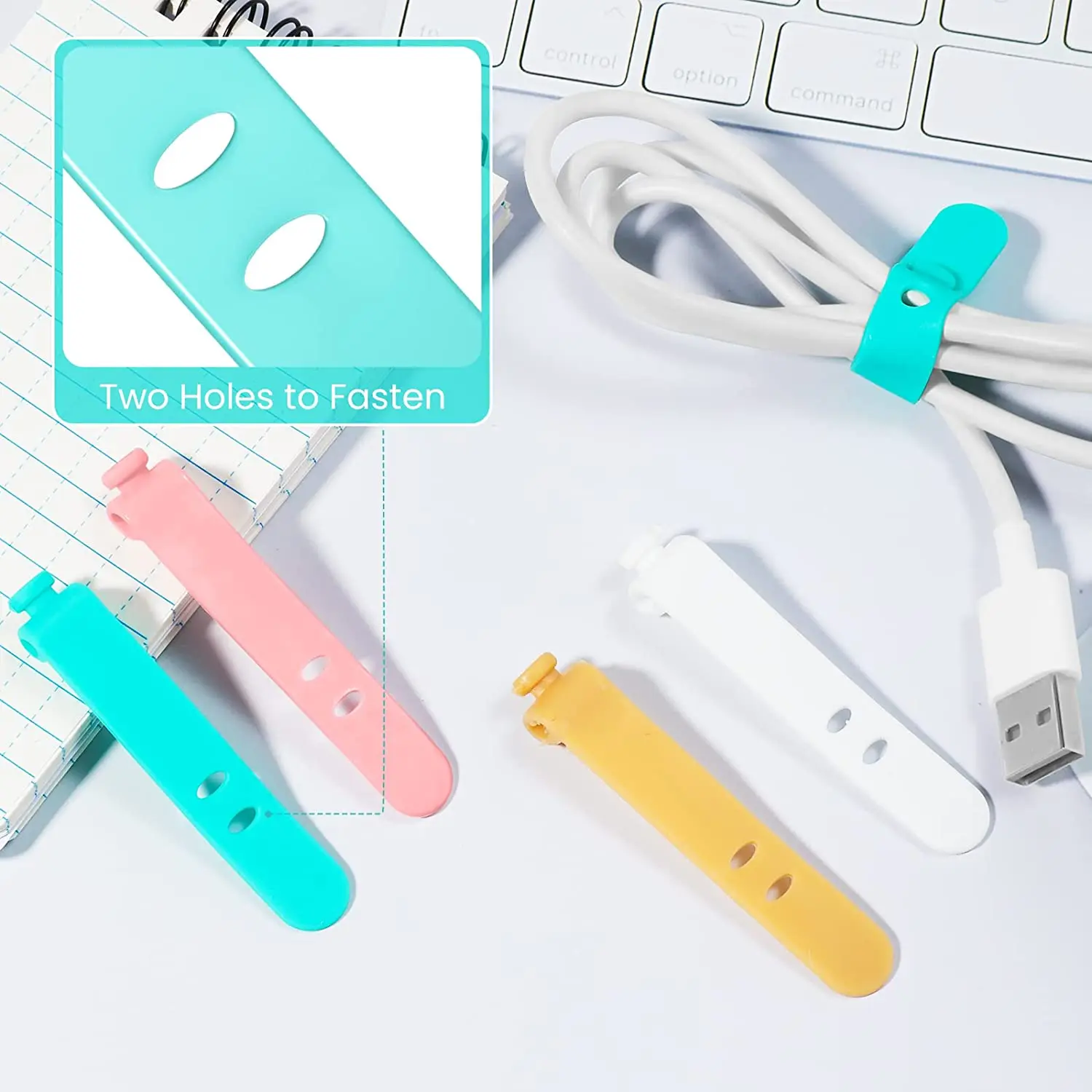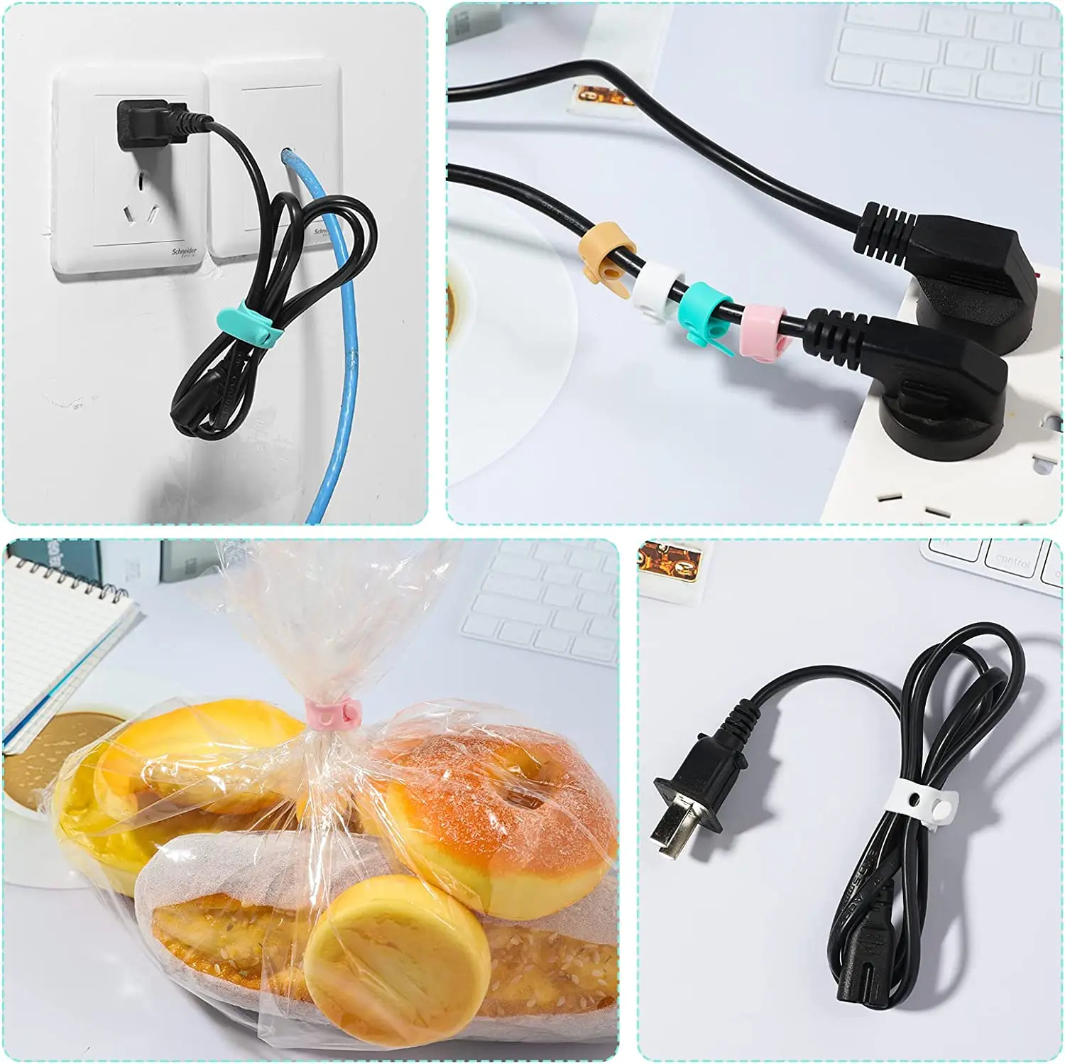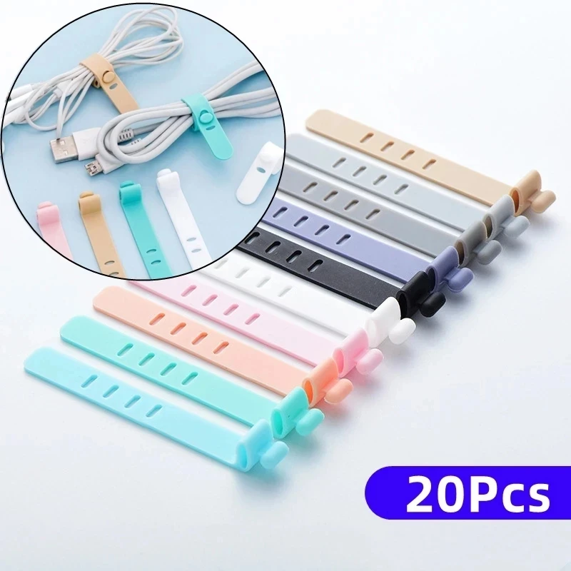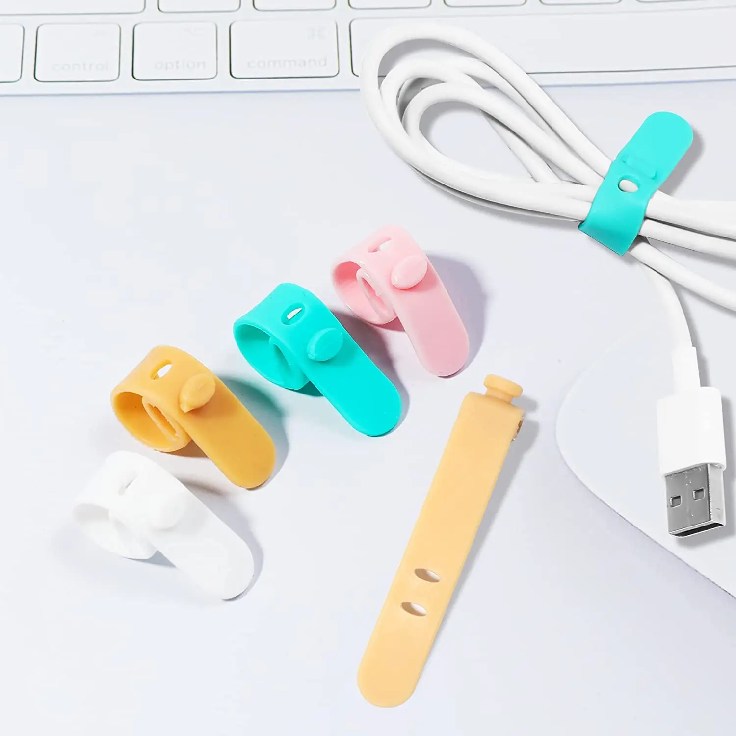 Comprar Organizador de Cables de silicona, correas enrolladoras, Clip para auriculares, cargador, gestión de cables, soporte fijador de cables, 4/20 piezas