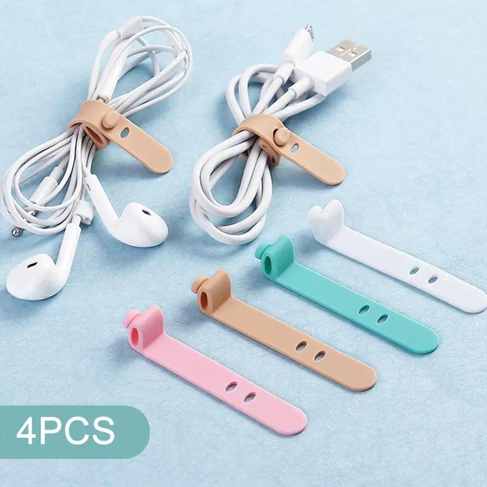 Comprar Organizador de Cables de silicona, soporte de cinta para encuadernación de datos, gestión de bridas, bobinadora, marcador, 4 Uds.