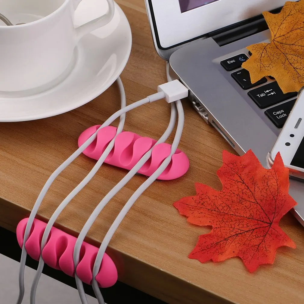 Comprar Organizador de cables USB de silicona, bobinador de cables de escritorio, Clips de gestión, soporte de cables para ratón, auriculares, organizador de cables
