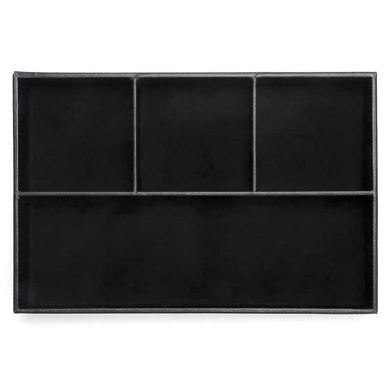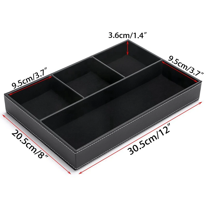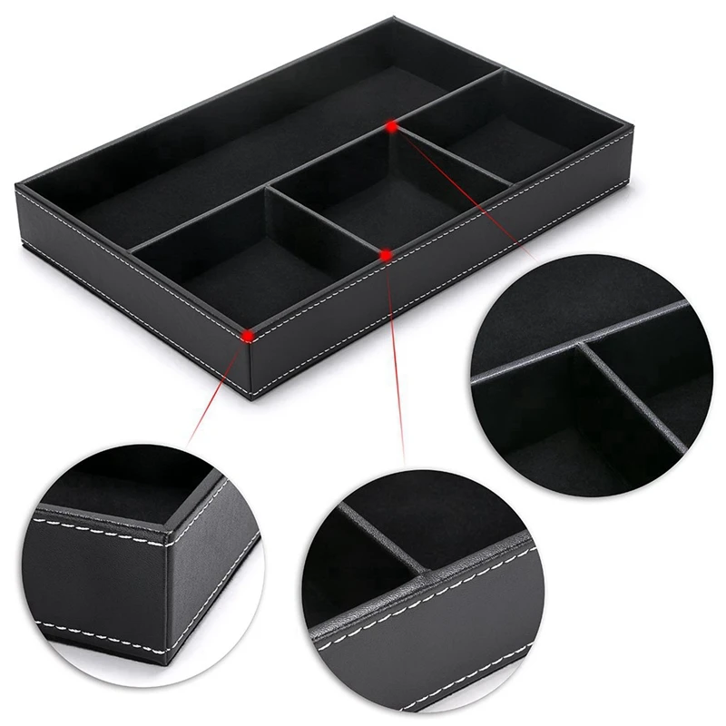 Organizador de cajones de escritorio con 4 ranuras, divisor organizador de almacenamiento de cajones de cuero Pu para suministros de escritorio de oficina, colección y acceso de valores