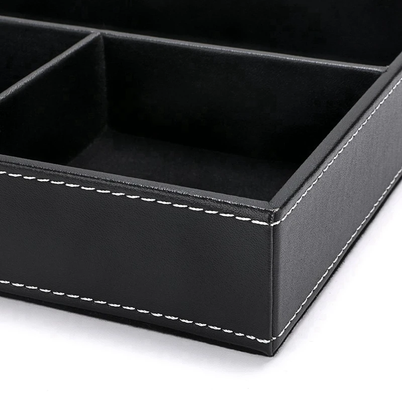 Organizador de escritorio construcción de piel sintética de PU de alta calidad, hecho de piel sintética duradera, el interior y la parte inferior están hechos de franela suave que evitan rayones en el escritorio.