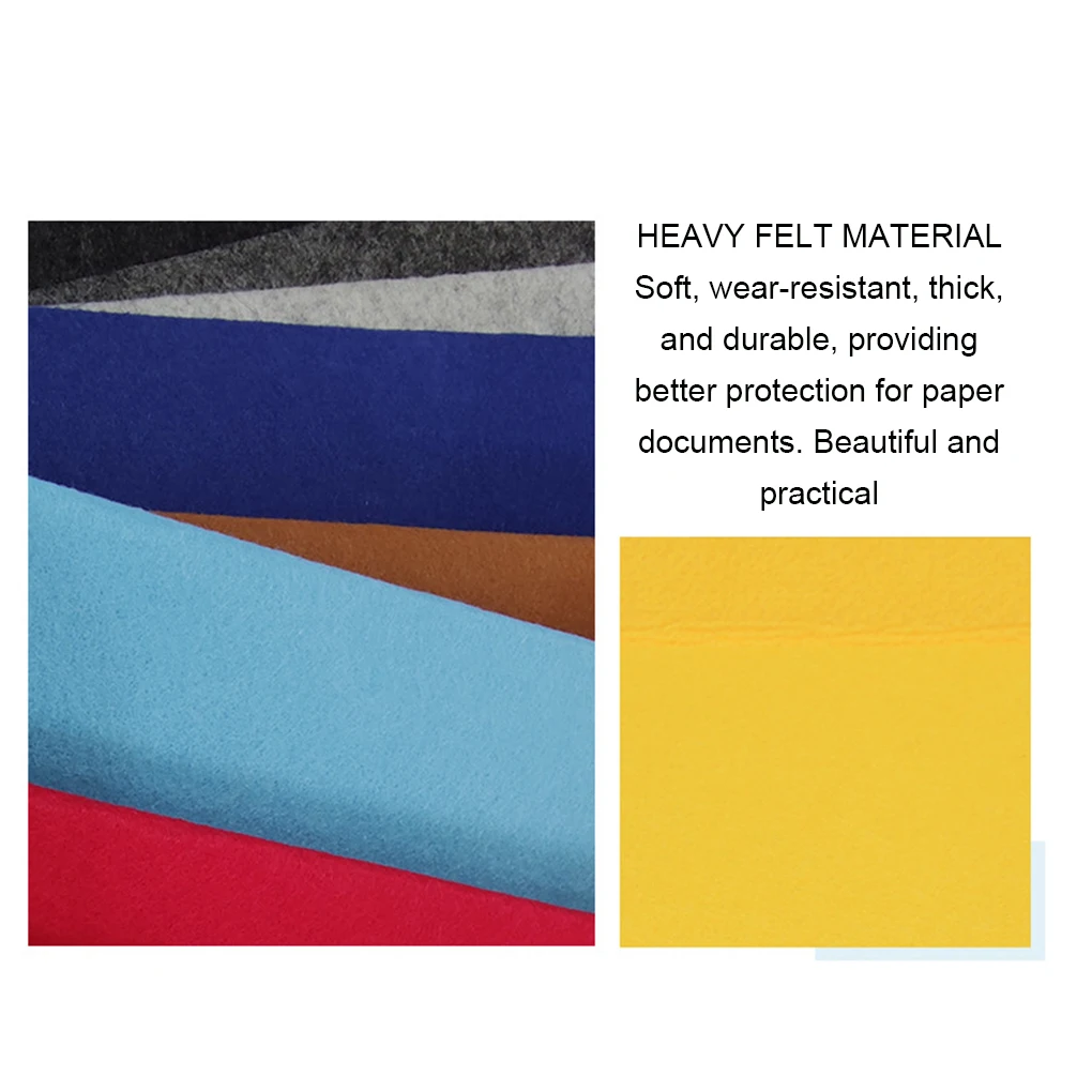 Fieltro duradero: Hecho de fieltro, esta bolsa para documentos está diseñada para durar, ofreciendo una protección duradera para sus valiosos papeles y archivos. No más preocupaciones por el desgaste