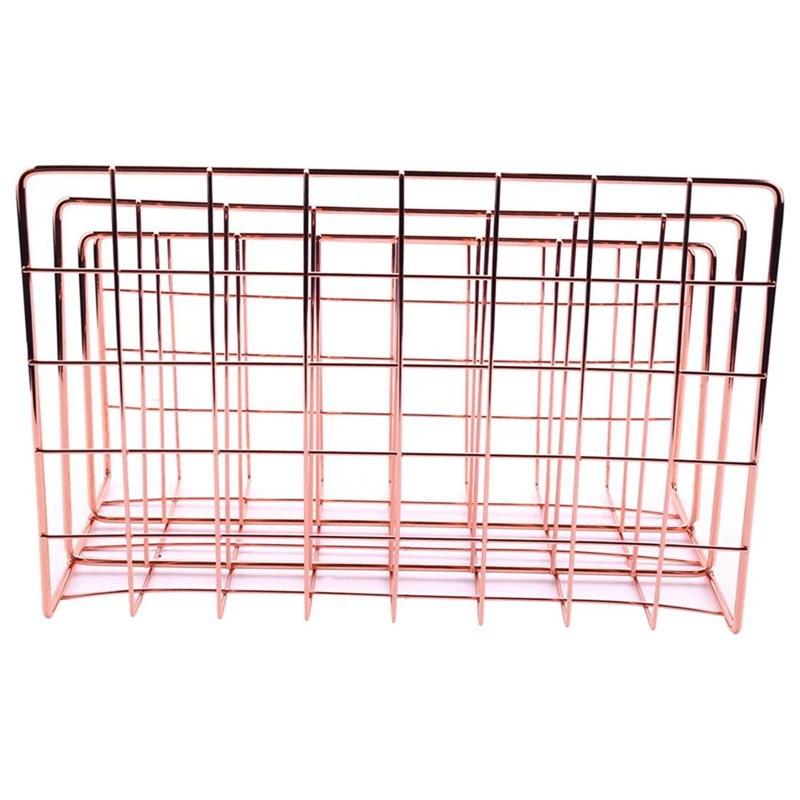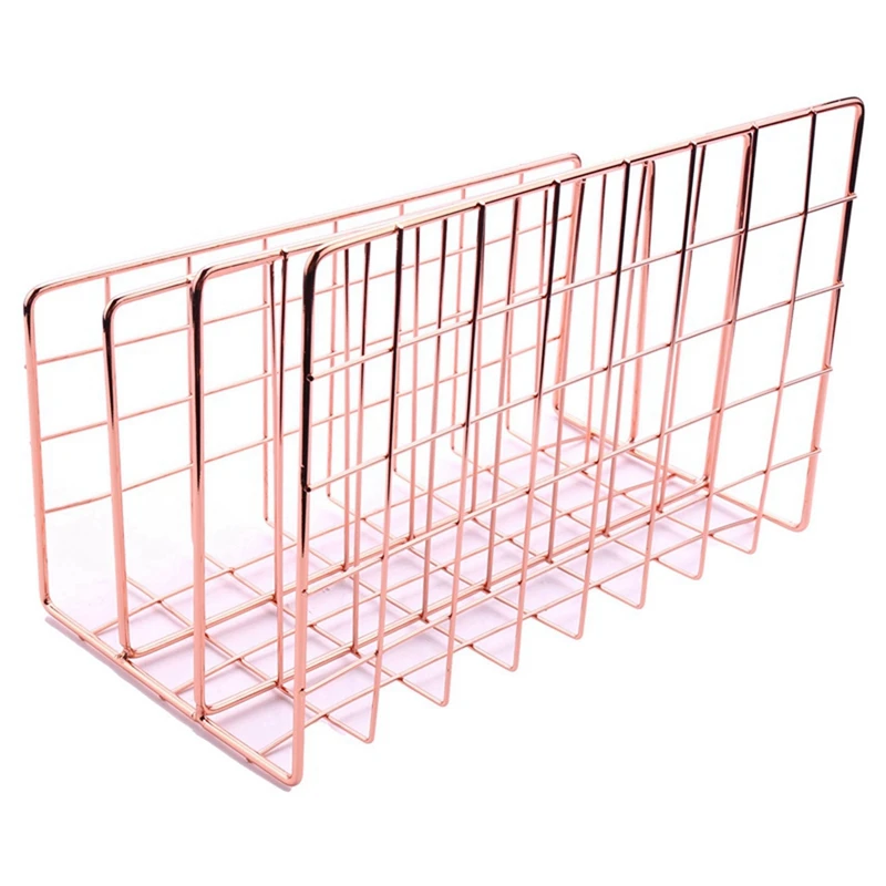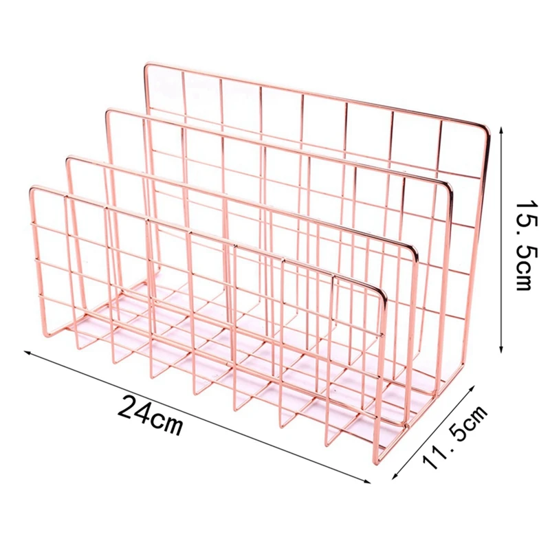 Hecho de soldadura de metal de alta calidad, estable y duradero, fácil de limpiar. Agregue un aspecto nítido y una organización inteligente al escritorio con este elegante clasificador de correo de oro rosa.