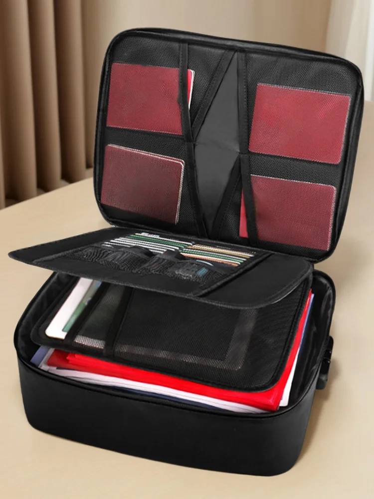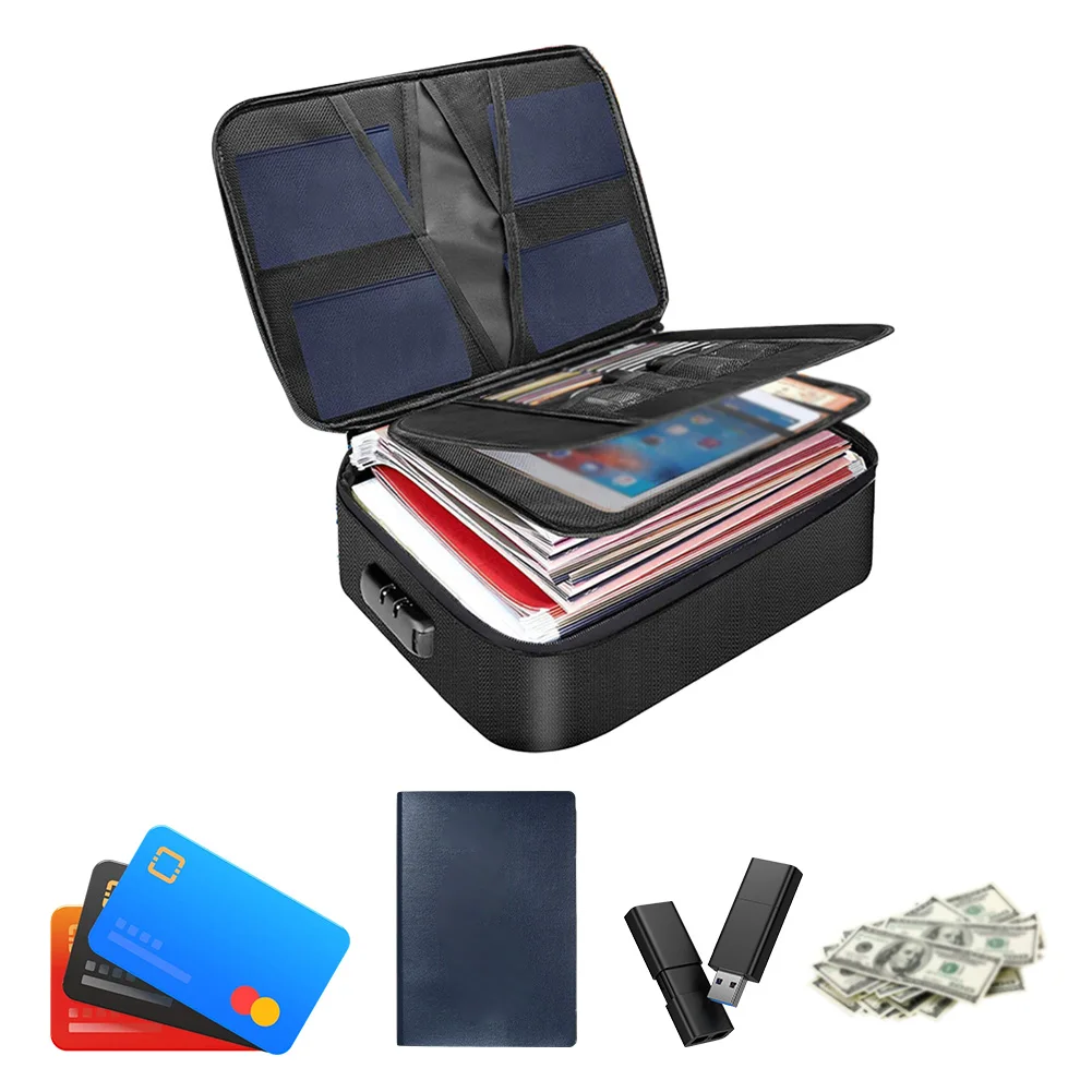 2. Diseño multicapa de gran capacidad:A diferencia de otras soluciones de almacenamiento, nuestra caja de documentos de archivos multicapa proporciona una amplia capacidad para satisfacer todas sus necesidades organizativas.Desde documentos vitales, archivos y efectivo hasta unidades USB y computadoras portátiles, todo encaja de forma segura y ordenada para un fácil acceso.