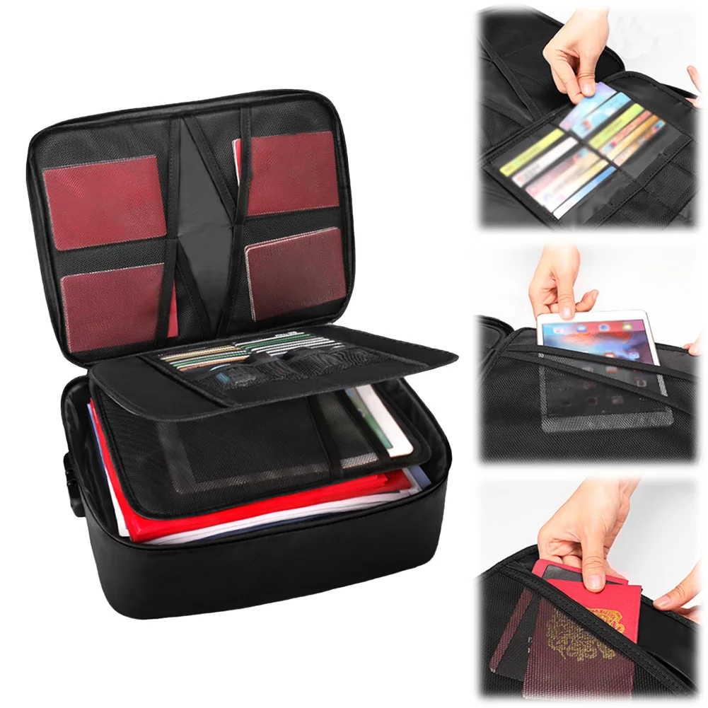 Organizador de documentos con cerradura Caja de documentos de archivos multicapa Caja de seguridad impermeable ignífuga Caja organizadora de documentos Caja de almacenamiento segura portátil para viajes en casa para archivos de documentos importantes y más