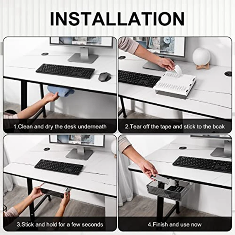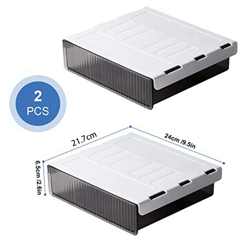 [Cajón autoadhesivo] 24x21,7x6,5 CM. El organizador de cajones debajo del escritorio es fácil de instalar con tres cintas autoadhesivas fuertes. Es más estable y estético que las cajas de cajones convencionales y es fácil de usar para el almacenamiento.
