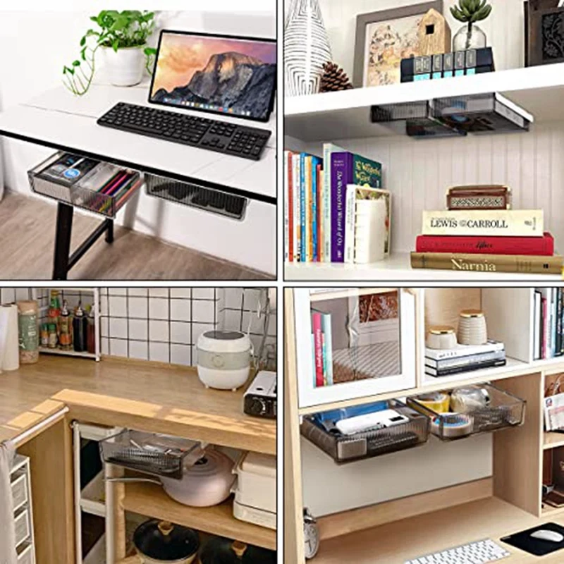 Comprar Organizador de escritorio autoadhesivo, cajón debajo del escritorio, oficina, hogar, escuela, oferta de 2 paquetes