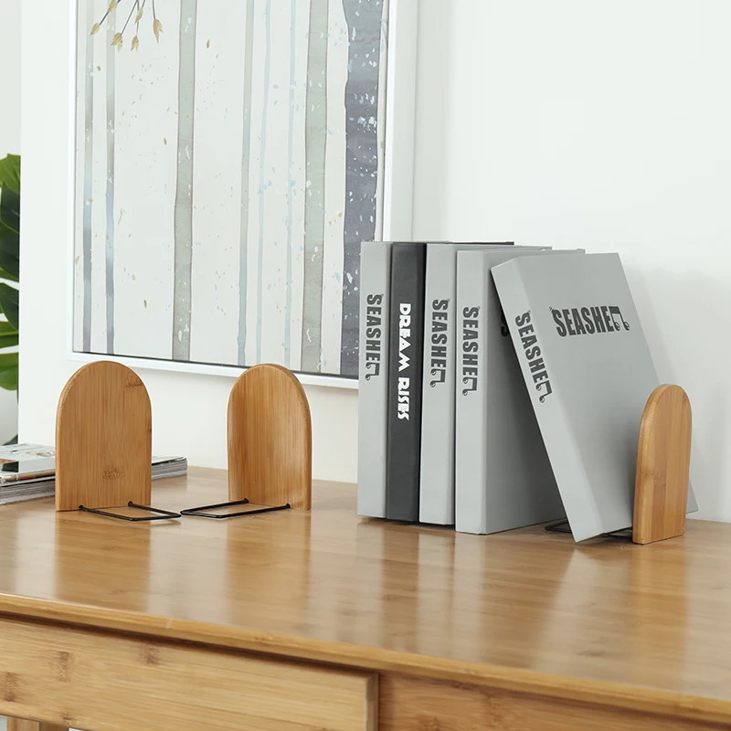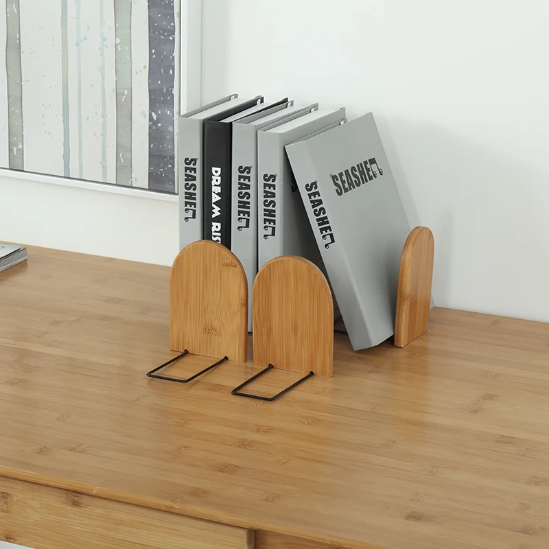 Organizador de escritorio de bambú natural para oficina, hogar, sujetalibros, extremos de libros, soporte, estante para libros