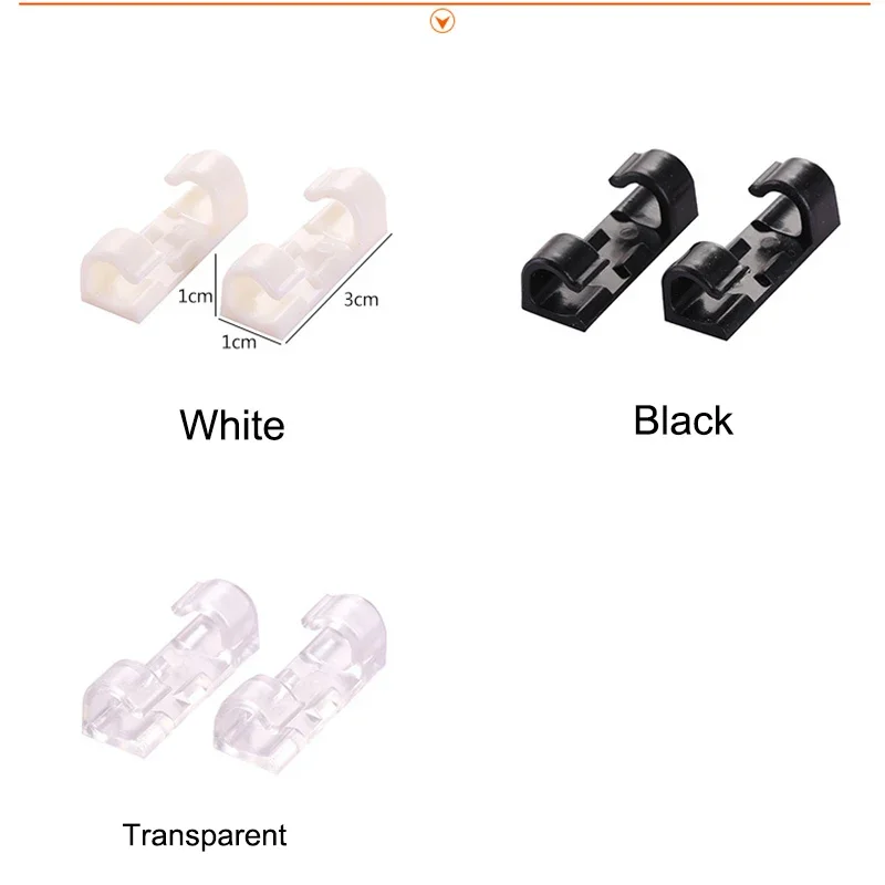 Este producto llamado Clips para cables puede ayudarle a organizar fácilmente sus cables y enchufes. Se puede colocar en paredes, azulejos, vidrio y otras superficies lisas.
