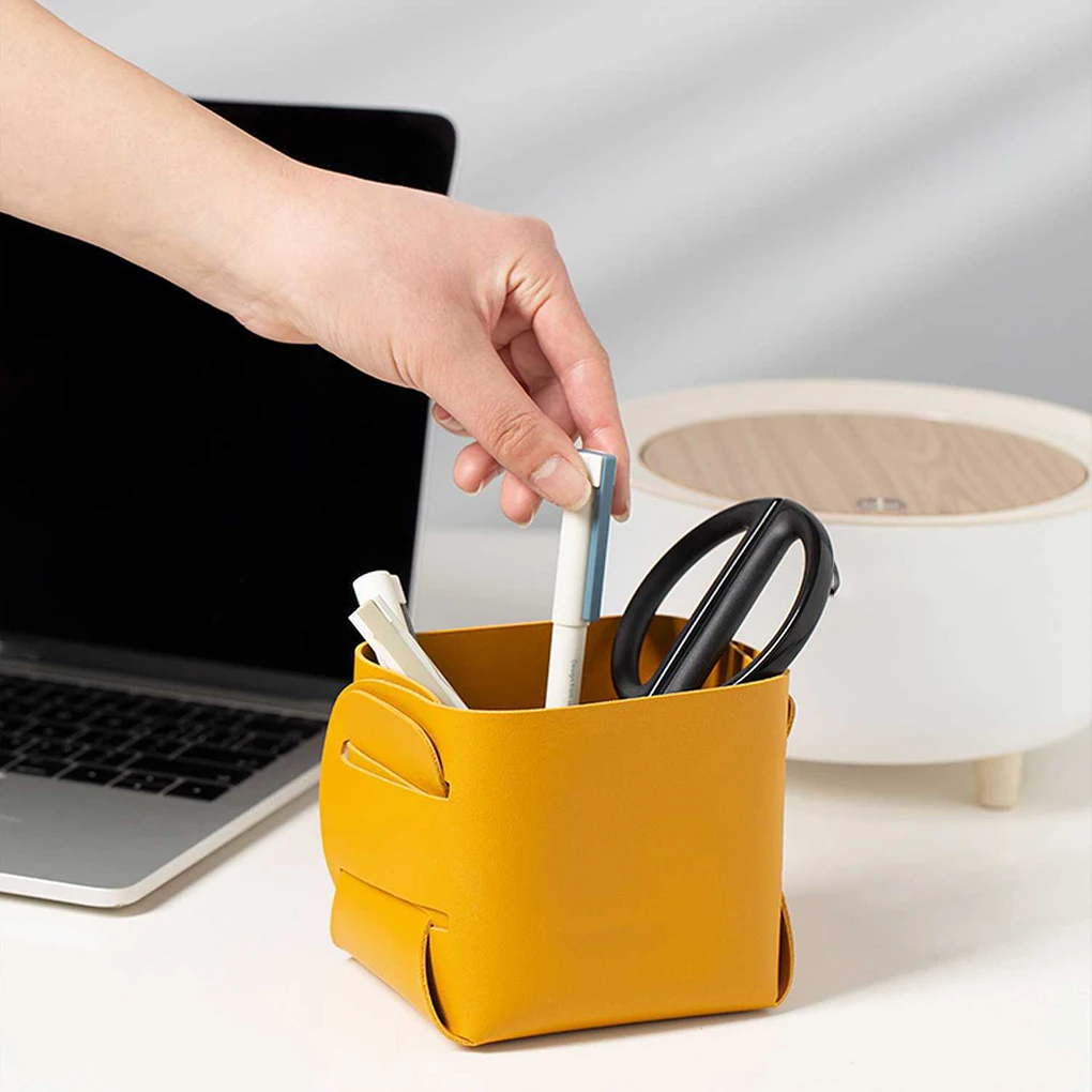 Para cualquier espacio de trabajo: ya sea en casa, en la oficina o asistiendo a una conferencia, este portalápices de cuero es el accesorio para cualquier espacio de trabajo. Con su superficie elegante y fácil de limpiar, seguro que impresionará.