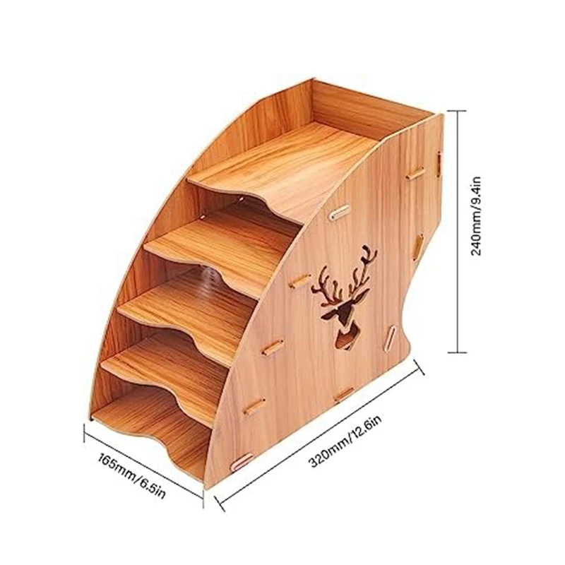 Lo que obtendrá: un estante de almacenamiento de madera de 5 ranuras. Tamaño del producto terminado: 32x24x16,5 cm.