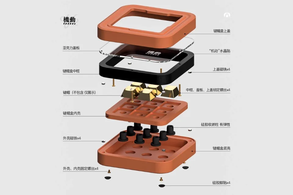 Único Motorizado V2 Keycap Organizador Columna Magnética de Silicona Nueve Rejilla Impresión 3D Teclado Mecánico Personalizado Estuche de Almacenamiento