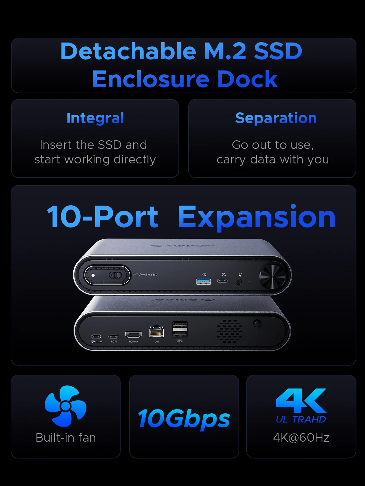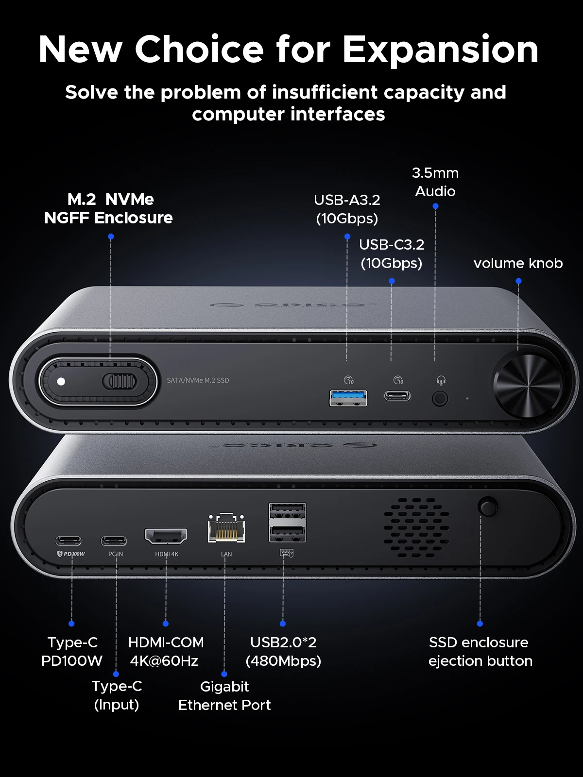 Comprar ORICO 10 en 1 USB C Docking Dtation con carcasa M.2 SSD PD100W carga Ethernet 4K60Hz HDMI-com 3,5mm Control de volumen de Audio