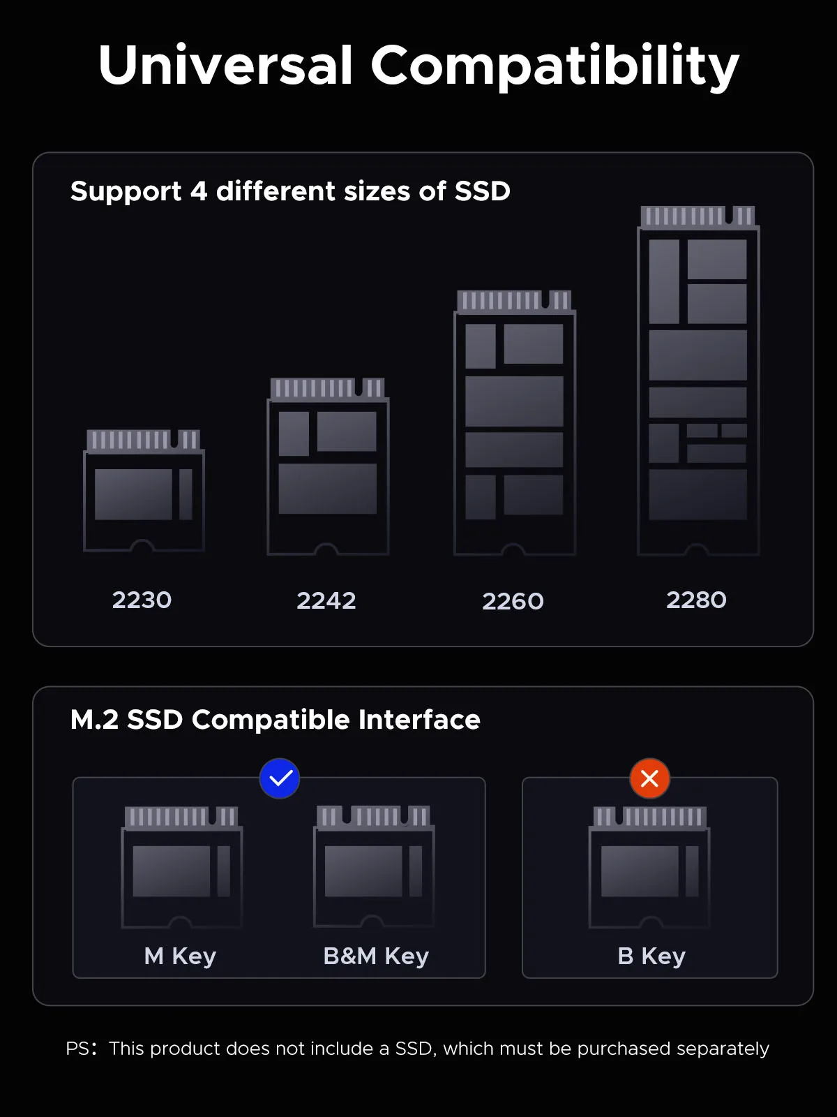 Experimente una transferencia de datos ultrarrápida y amplias capacidades de almacenamiento con la carcasa SSD M.2 que admite protocolos NVMe y SATA.Ya sea para edición de vídeo intensiva o análisis de datos a gran escala, esta característica garantiza un rendimiento y confiabilidad óptimos.