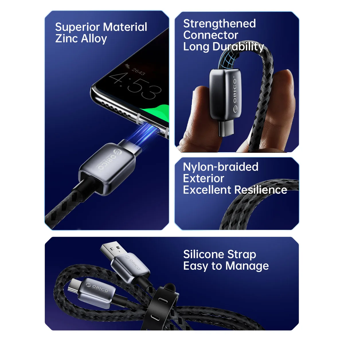 Comprar ORICO 100W Cable USB PD 5A Cable de carga rápida tipo C trenza de nailon para Xiaomi MacBook Pro iPad Pro Samsung Galaxy portátil iPhone15