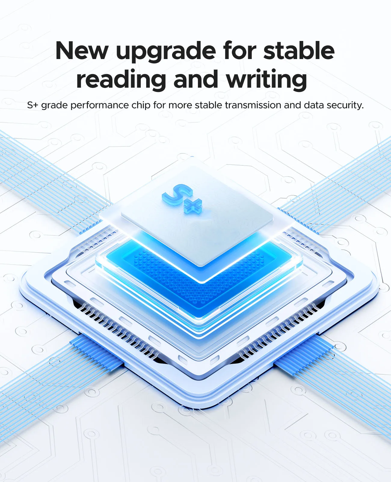 La capacidad de gran tamaño de 32 GB/64 GB/128 GB/256 GB le permite almacenar muchos videos, fotos, música, juegos y otros archivos sin riesgo de pérdida.