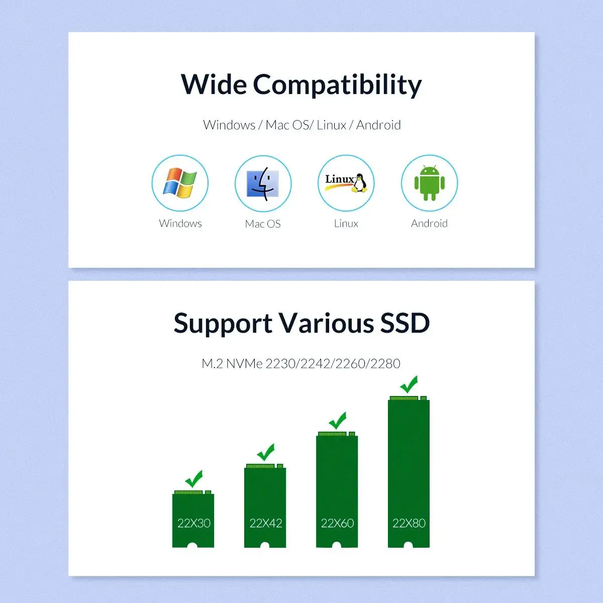 -Compatible con cuatro especificaciones diferentes de M.2 NVME 2230,2242,2260,2280;