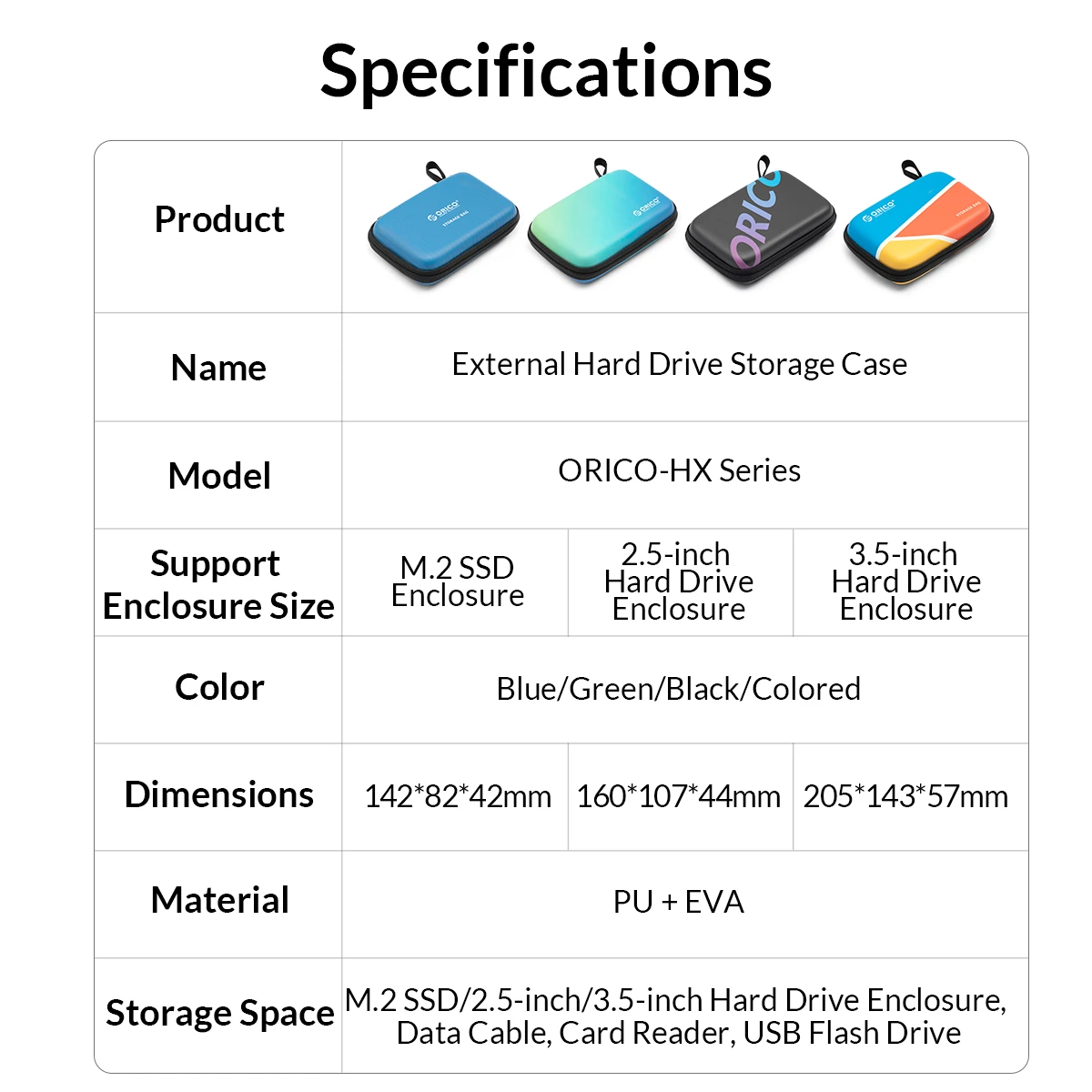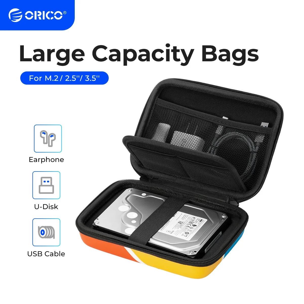 Comprar ORICO 2,5 ''3,5 ''funda protectora para disco duro para HDD externo M.2 funda/auriculares/disco U bolsas de almacenamiento coloridas de gran capacidad
