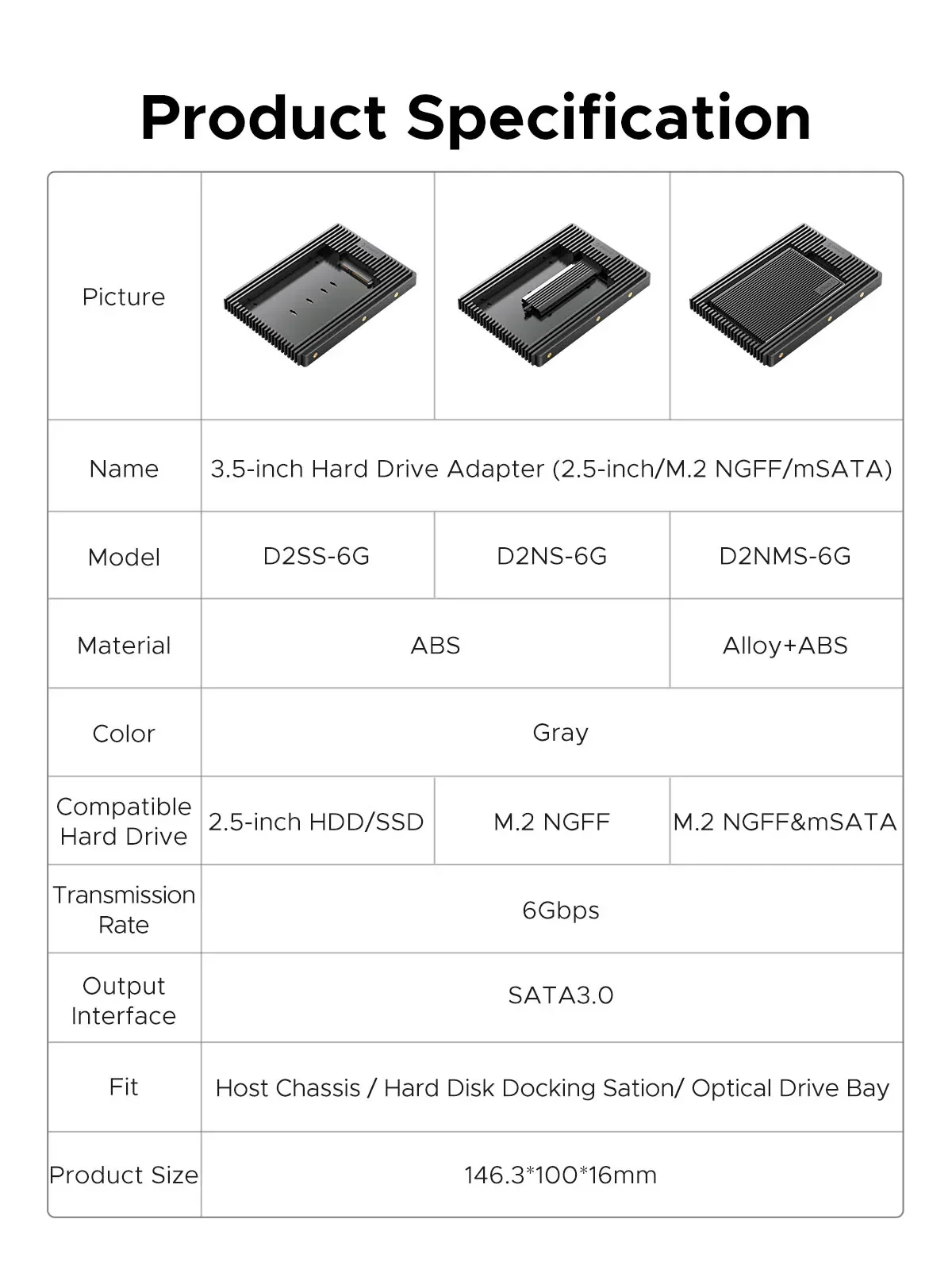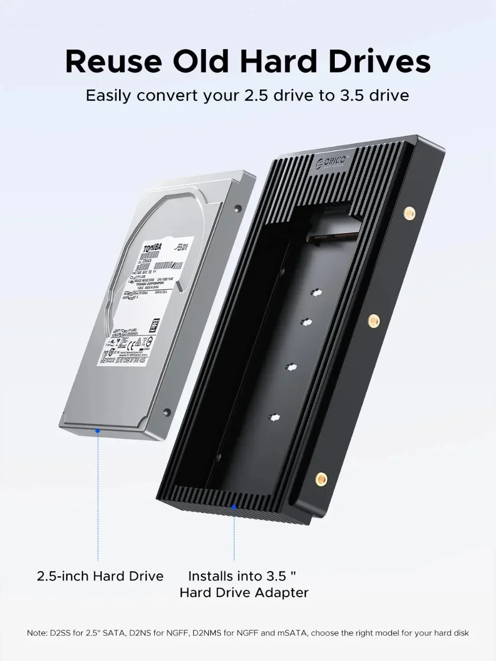 Comprar ORICO 2,5 a 3,5 pulgadas disco duro Caddy negro SATA NGFF mSATA interfaz velocidad de transferencia rápida 3,0 adaptador de disco duro estándar