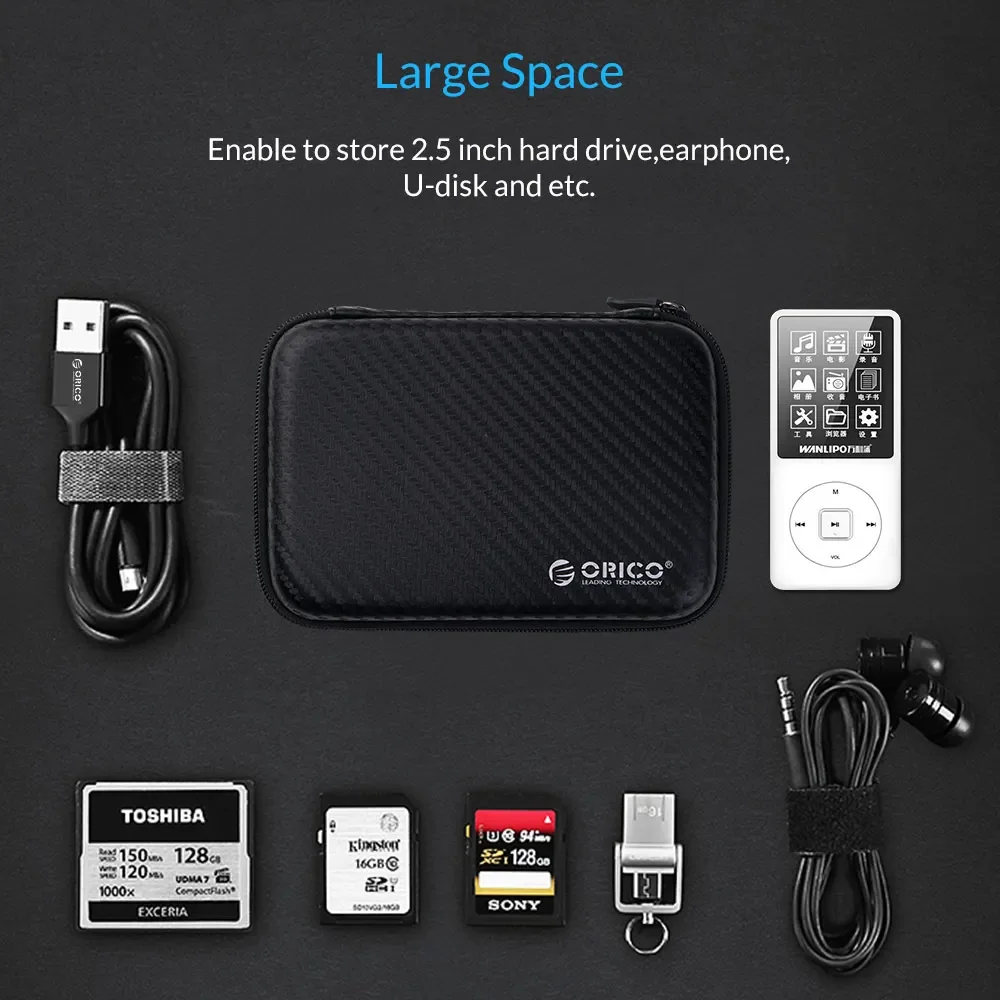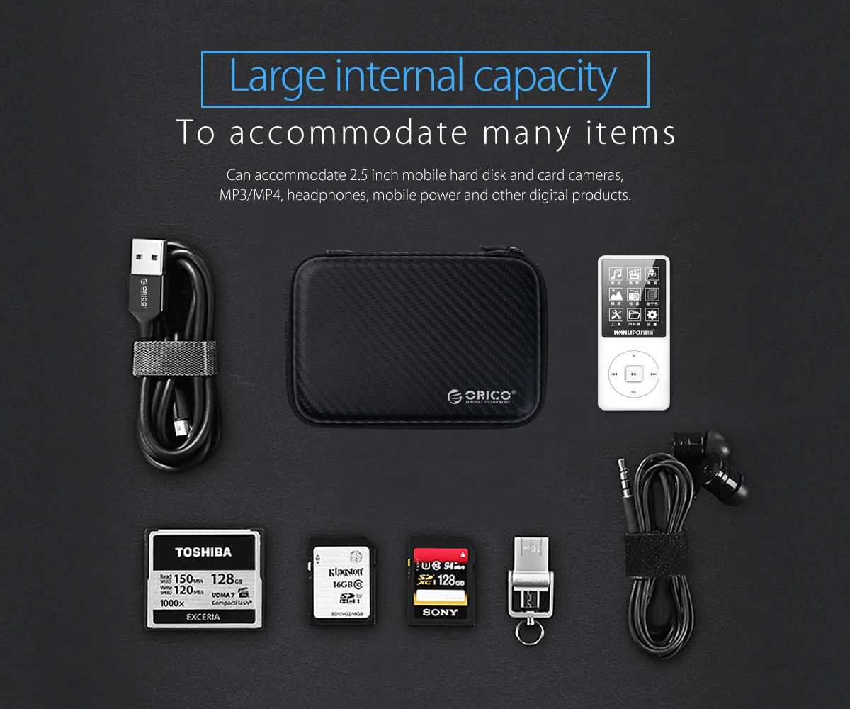 ORICO 2.5 Estuche para disco duro Bolsa de protección HDD portátil para disco duro externo de 2,5 pulgadas/auriculares/disco U Estuche para unidad de disco duro negro