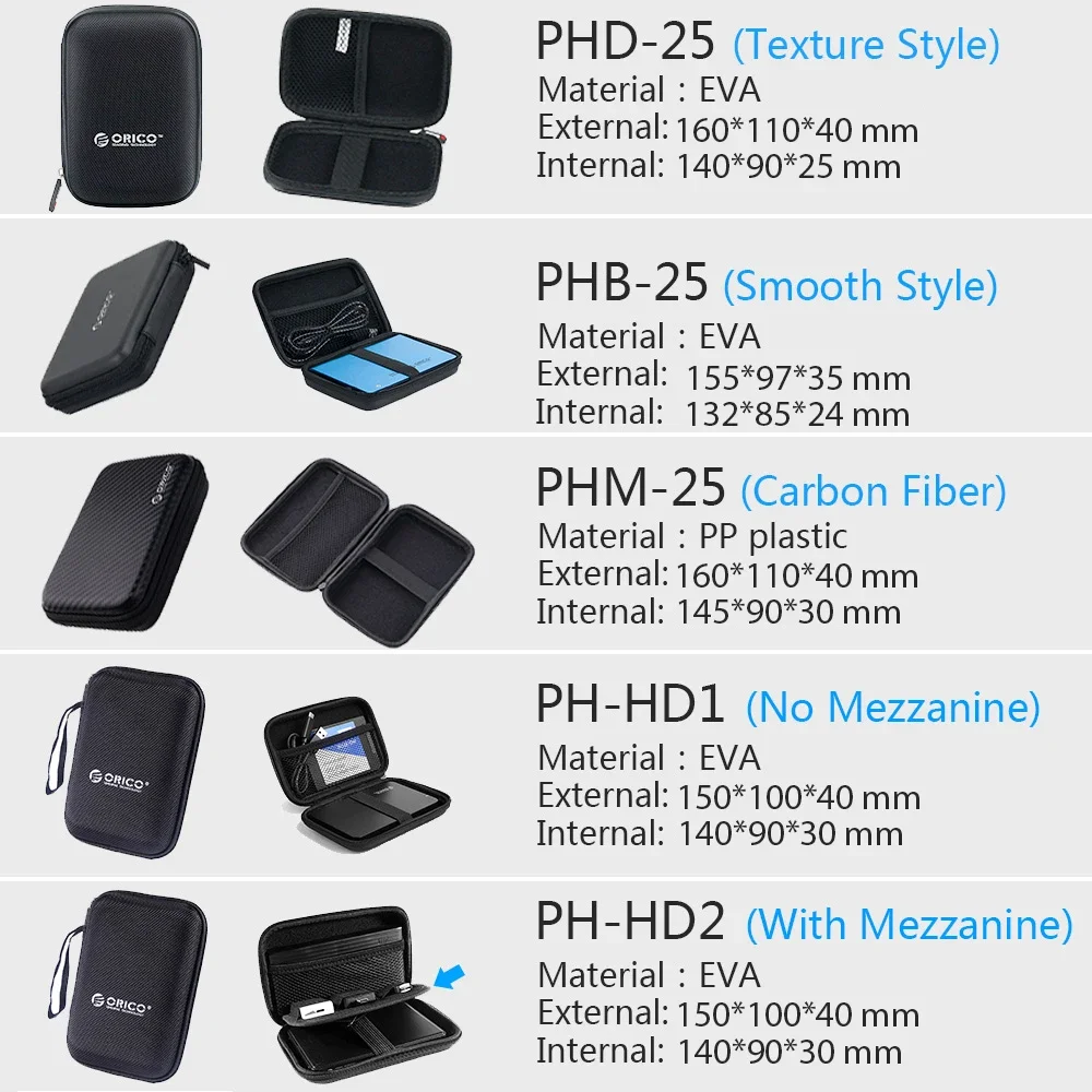 Comprar ORICO 2.5 Estuche para disco duro Bolsa de protección HDD portátil para disco duro externo de 2,5 pulgadas/auriculares/disco U Estuche para unidad de disco duro negro