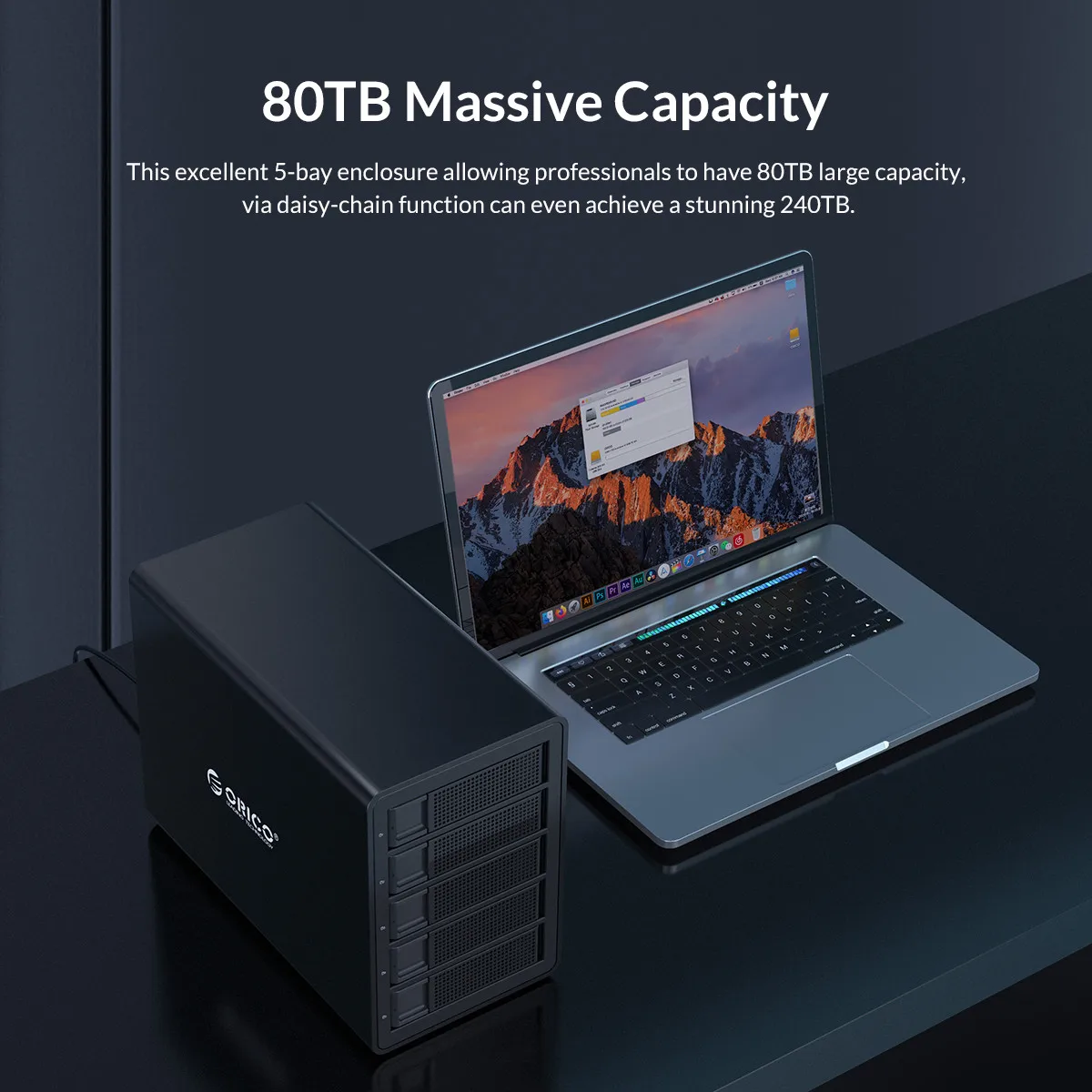 【Caja de expansión de cadena de margaritas】 -- ¿Le falta espacio de almacenamiento?¿Le preocupa sus valiosos datos?La carcasa para disco duro ORICO de 4/5 bahías con puerto tipo C puede ayudarlo, con la función de cadena de margaritas, puede combinar otros 2 dispositivos para ampliar la capacidad a 192 TB (64 TBX3), adecuado para empresas pequeñas y medianas empresas, estudios multimedia y profesionales. usuarios.