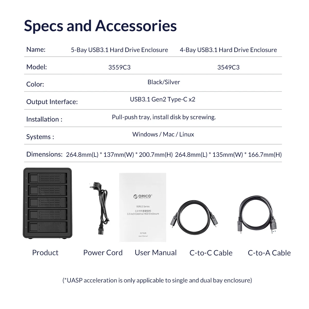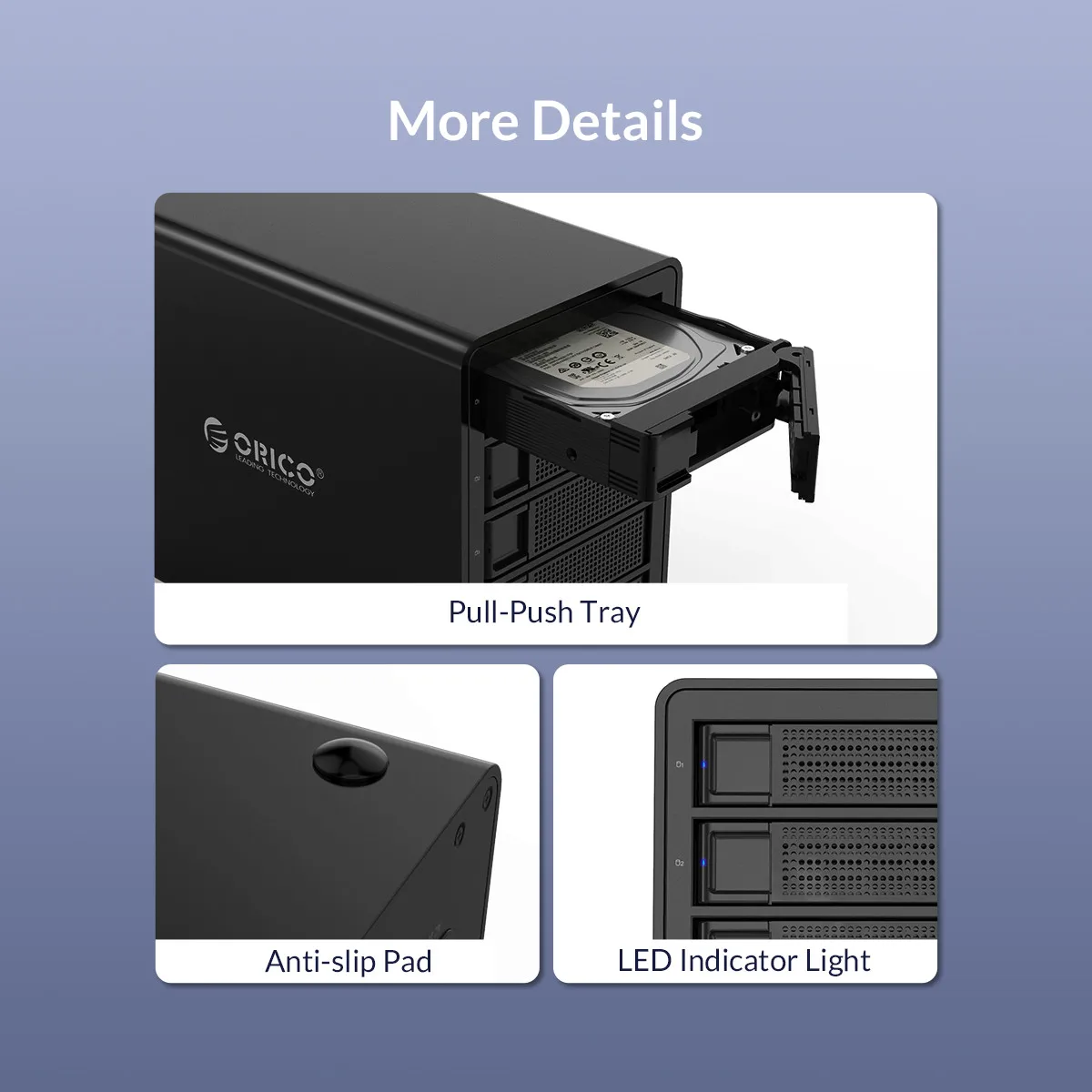 Comprar ORICO 35 Series Type-C HDD estación de acoplamiento 10Gbps 5 bahías de gran capacidad para caja de disco duro de 3,5 pulgadas para minería de Altcoins
