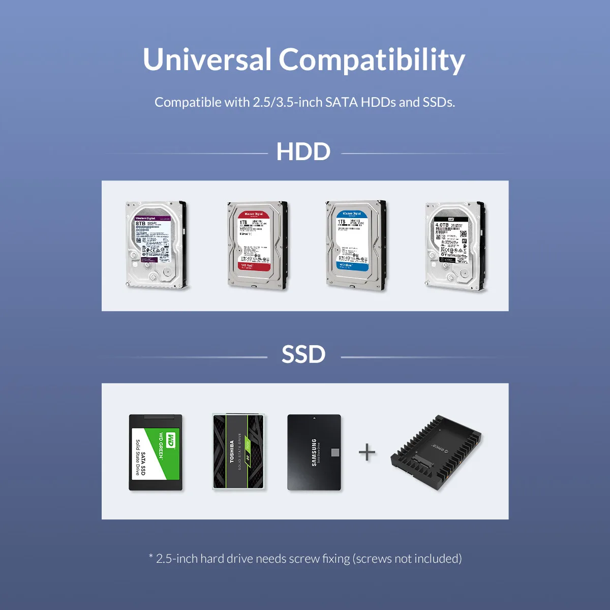 Amplia compatibilidad con la carcasa de la bahía de la unidad: la carcasa de la bahía del disco duro ORICO se adapta a la mayoría de los discos duros sata de 2,5 y 3,5 pulgadas con instalación de tornillos para evitar la vibración del disco duro.Cualquiera que sean sus sistemas informáticos, Mac, Linux o Windows, la carcasa de 4 sata puede ser compatible con él.