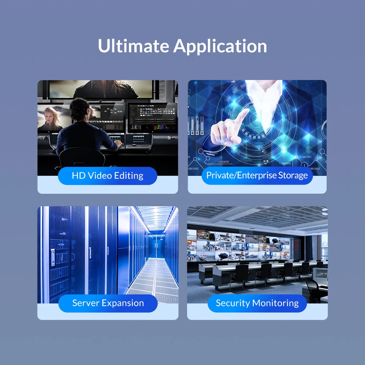 【Caja de transmisión rápida USB3.1 Gen2 de 10 Gbps】-- Adoptando el puerto de transferencia tipo C y el protocolo USB3.1 Gen2, la carcasa sata de 4 bahías puede ayudar a que la velocidad de transmisión alcance hasta 10 Gbps.No es necesario retrasar la gran cantidad de dispositivos con capacidad de datos.Velocidad de transmisión rápida, sin demora, lectura y escritura rápidas.
