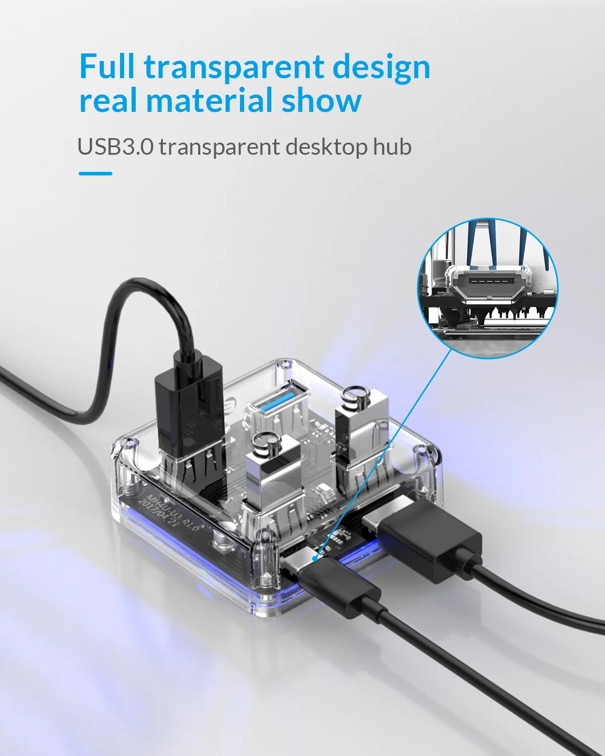 Hub transparente cuadrado de cuatro puertos (VENTA CALIENTE)