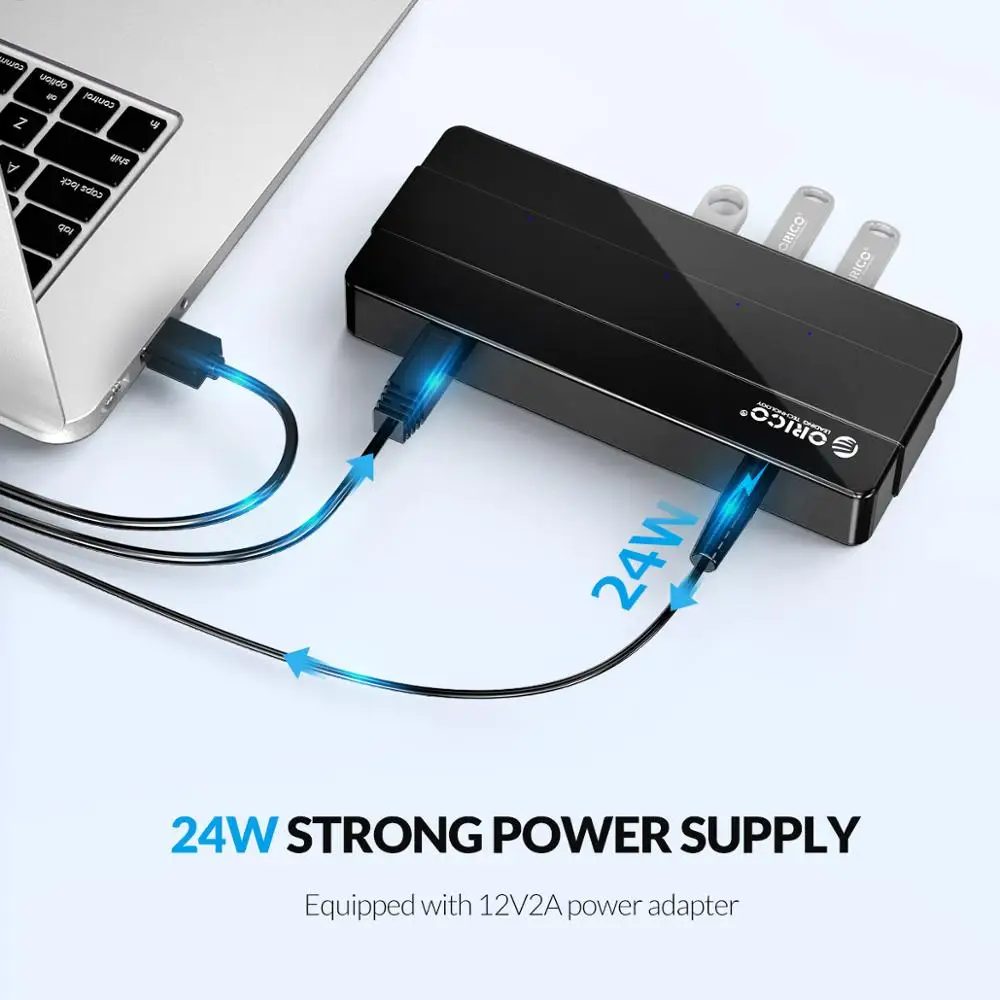 ORICO 4 7 puertos USB 3,0 Hub de alta velocidad con adaptador de corriente de 12V divisor USB adaptador OTG para accesorios de computadora portátil de escritorio
