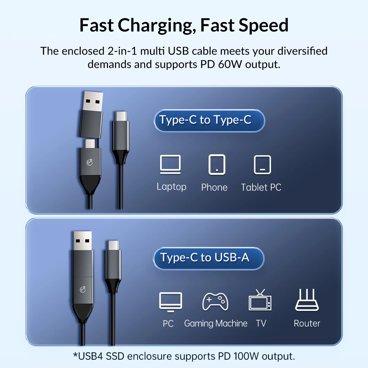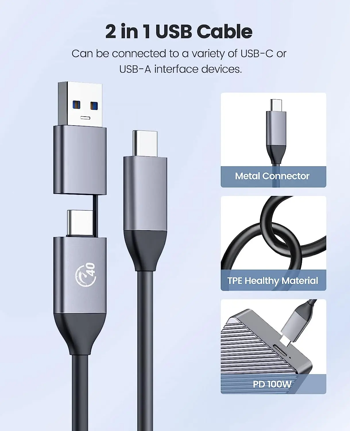 Admite SSD M Key (protocolo NVMe) / M&B Key (protocolo NVME y SATA), no compatible con SSD B Key, con 30cmCable de fecha 2 en 1 C a C/A.