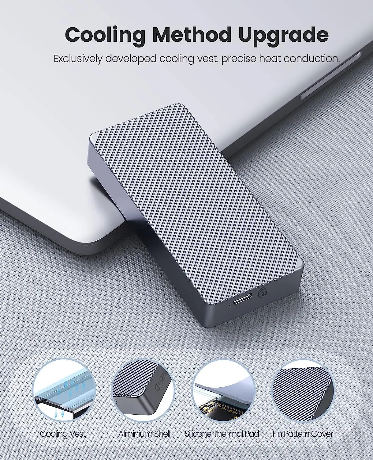 Para lograr 2000 MB/S para una caja de unidad de estado sólido de 20 Gbps, el dispositivo debe admitir el protocolo de transmisión USB3.2 GEN2*2.MAC solo alcanza 1000 MB/s, se recomienda elegir 10 Gbps.