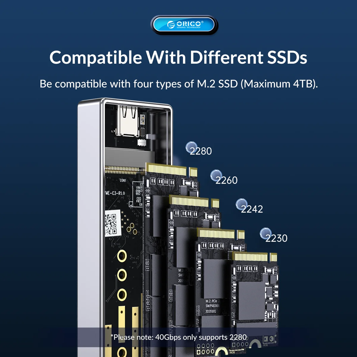 Comprar ORICO 40Gbps M.2 NVMe SSD Caja USB4 PCIe3.0x4 USB C Adaptador externo de aluminio Compatible con Thunderbolt 3 4 Herramienta gratis