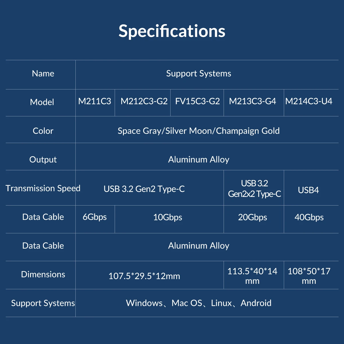 PD: Todos los modelos USB4.0 de 40 Gbps son tornillos metálicos, otros modelos de 6 Gbps, 10 Gbps, 20 Gbps y de doble protocolo son tornillos de goma.